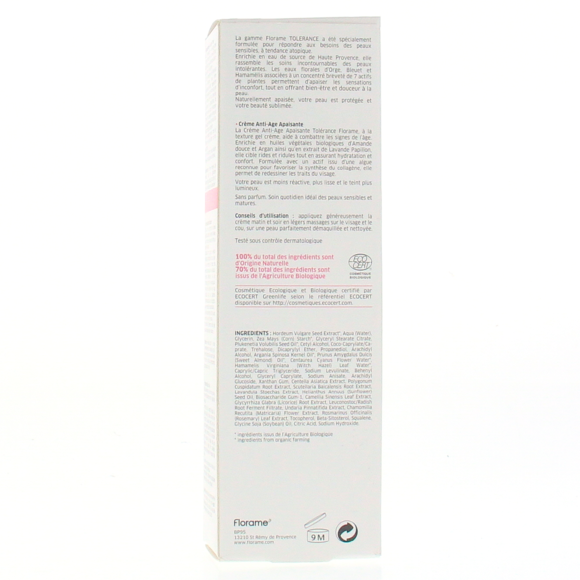 FLORAME Tolérance Crème anti-âge apaisante bio flacon pompe 50ml