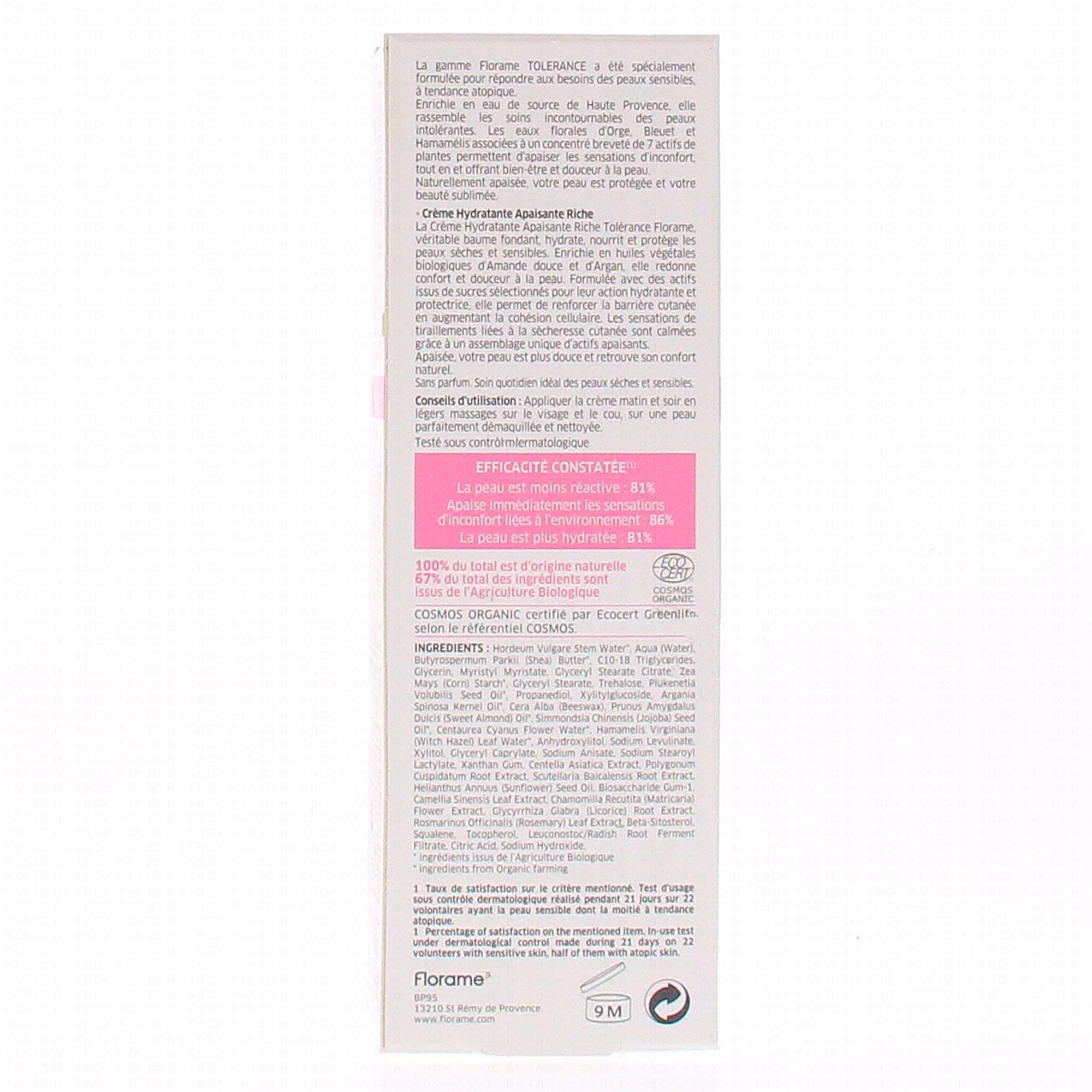 FLORAME Tolerance Crème hydratante apaisante riche tube 50 ml