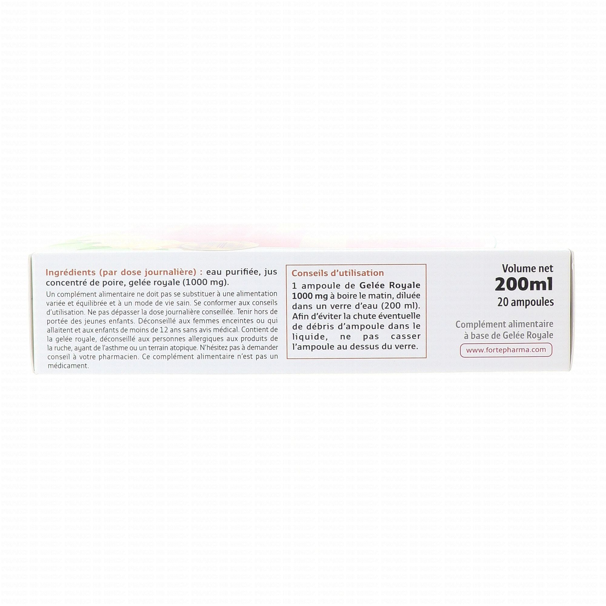FORTÉ PHARMA Gelée royale 1000mg 20 ampoules de 10ml contient les éléments suivants :