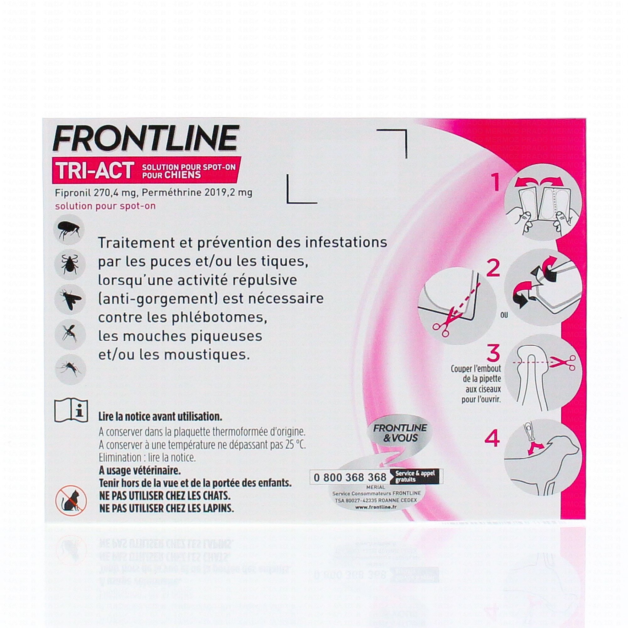 Sous forme de solution spot-on, prévenez le pelage de votre chien des puces, tiques, moustiques, mouches piqueuses et phlébotomes et ce, pendant 4 semaines. En plus de les prévenir, il les élimine efficacement grâce au Friponil et à la Perméthrine. De plus, le poil de votre chien est protégé même si il est mouillé.