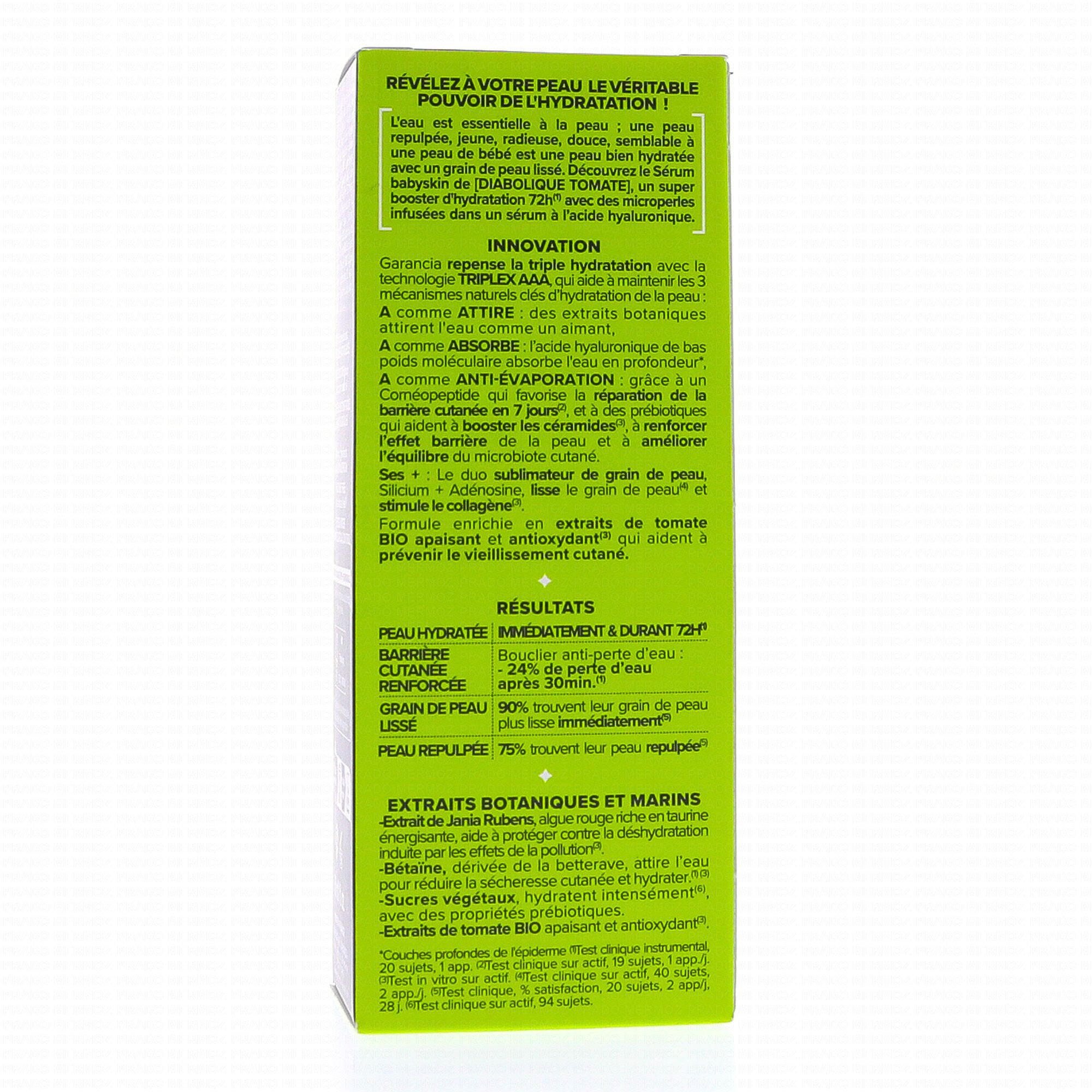 Le Sérum Babyskin DIABOLIQUE TOMATE de Garancia booste l'hydratation pendant 72h et lisse le grain de peau pour un effet peau de bébé immédiat.