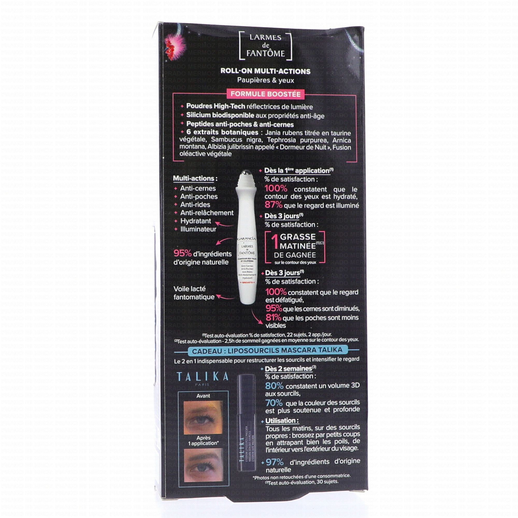 Larmes de Fantômes : Le soin Larmes de fantômes Garancia est un roll-on multi-actions pour le contour des yeux agissant contre les rides, les cernes, les poches et la sécheresse cutanée.