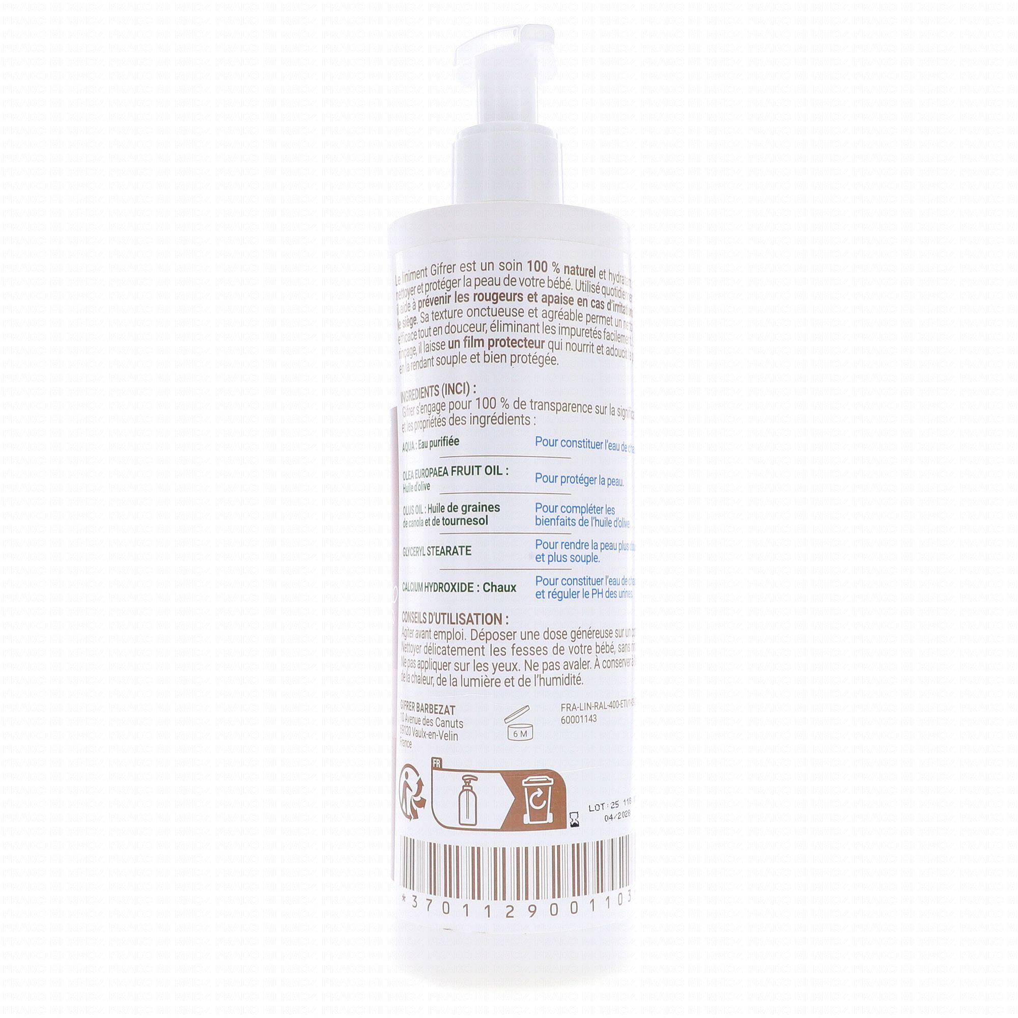 GIFRER Liniment Oléocalcaire est un soin 100% naturel et hydratant pour nettoyer et protéger la peau de votre bébé. Utilisé quotidiennement, il aide à prévenir les rougeurs et apaise en cas d'irritations sur le siège. Sa texture onctueuse et agréable permet un nettoyage efficace tout en douceur, éliminant les impuretés facilement. Sans rinçage, il laisse un film protecteur qui nourrit et adoucit la peau en la rendant souple et bien protégée.