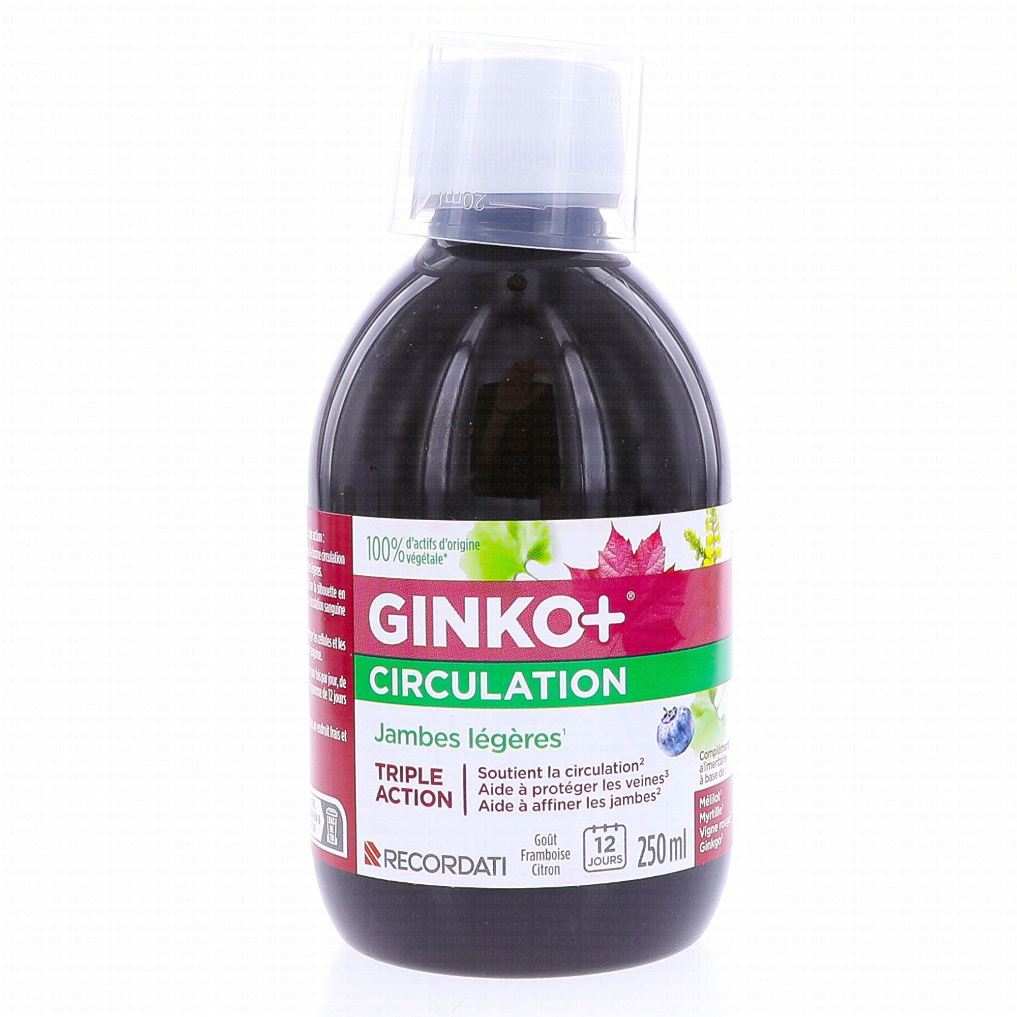 GINKOR + Circulation 250ml est un complément alimentaire qui contribue au maintien d'une bonne circulation grâce à la présence de Gingko, de Vigne rouge et de Mélilot. La myrtille favorise la protection des cellules contre le stress oxydatif grâce à ses propriétés antioxydantes.