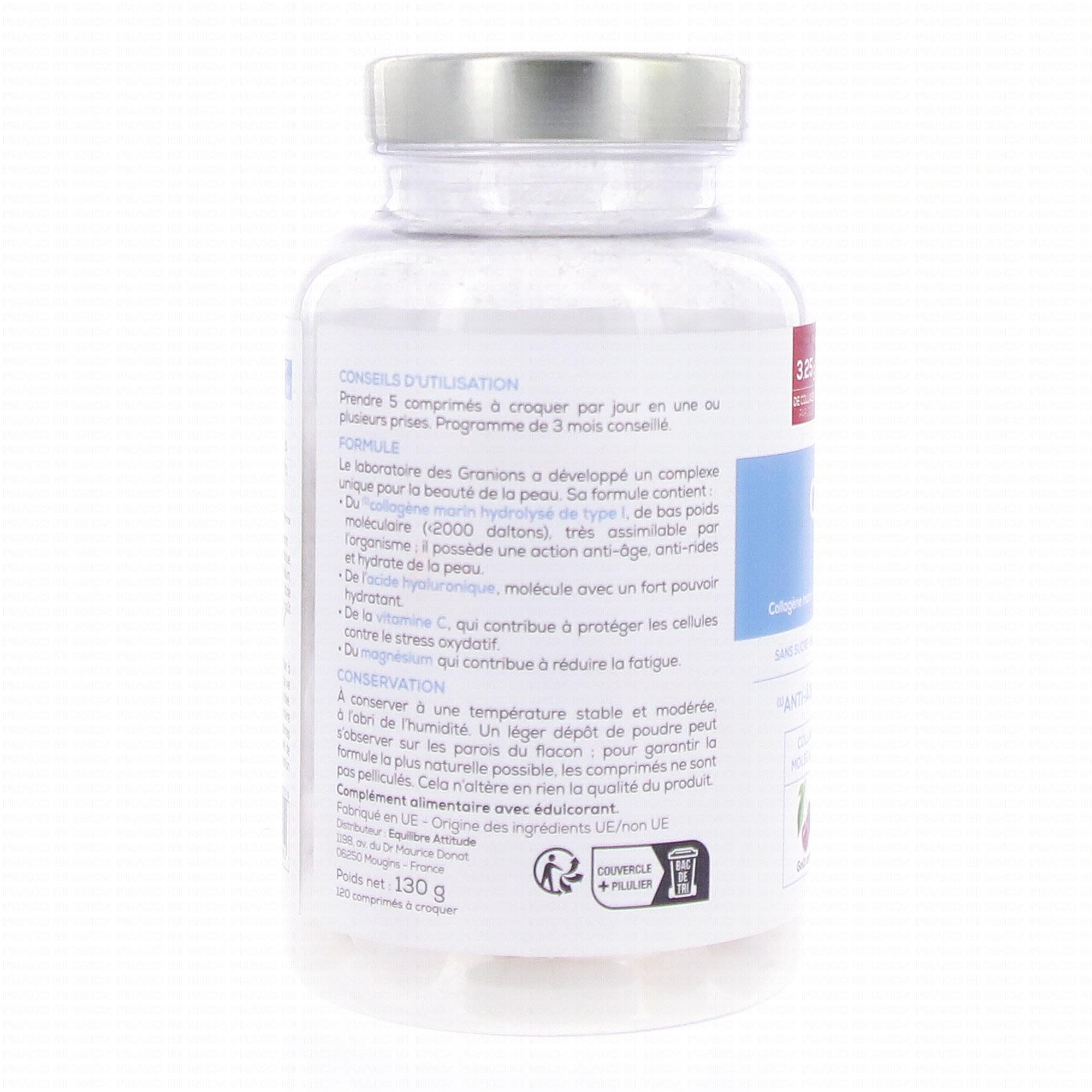 GRANIONS Collagène+ Beauté 120 comprimés à croquer contient les éléments suivants :