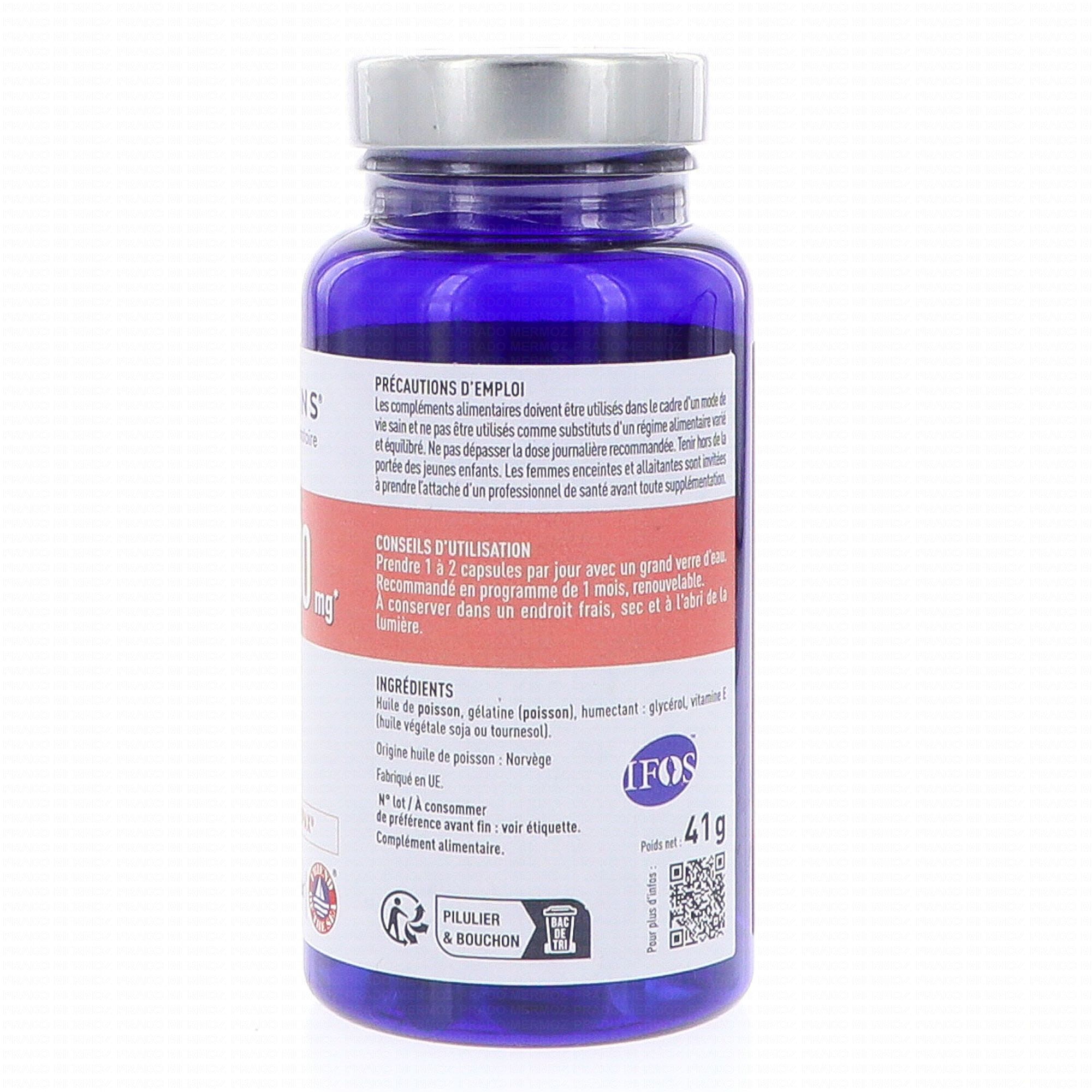 GRANIONS Oméga 3 1000mg Cerveau Coeur & Vision x60 capsules contient les éléments suivants :