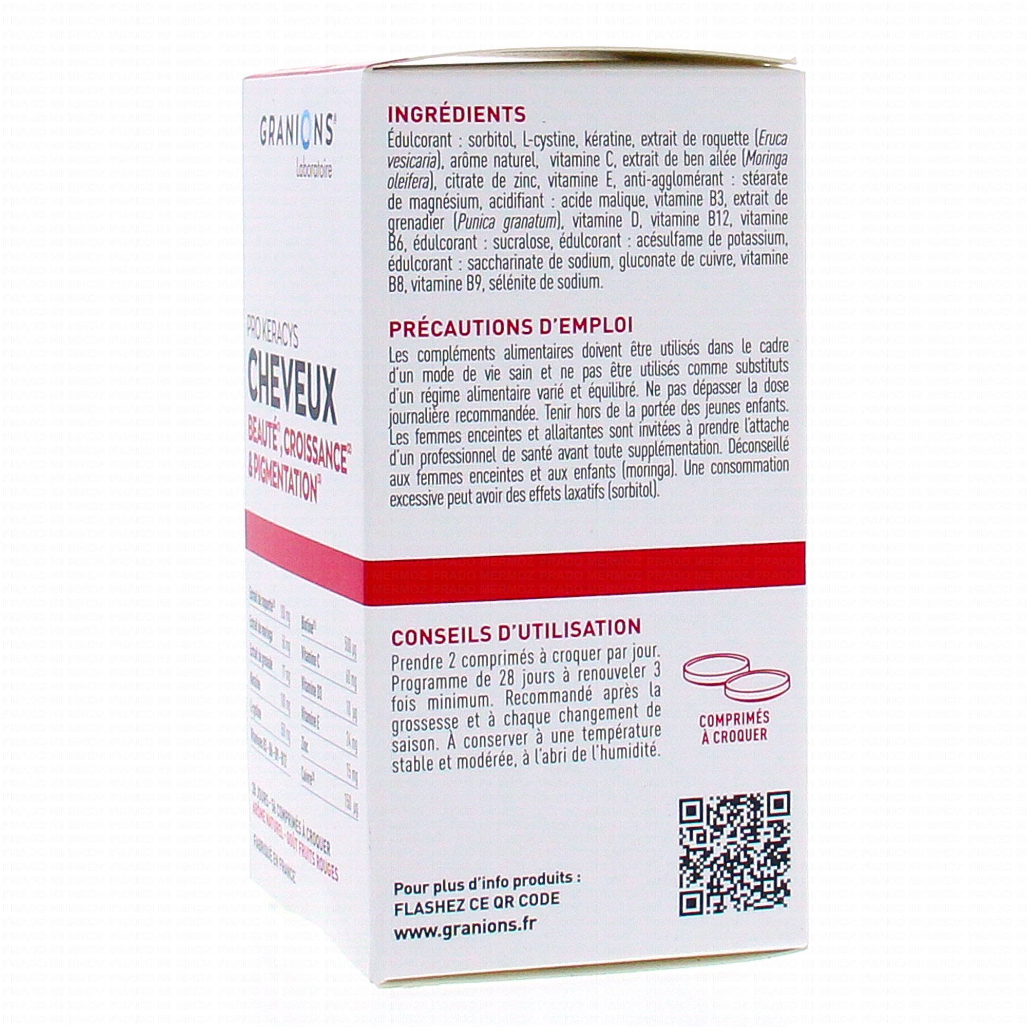 GRANIONS Pro Keracys Cheveux x56 Comprimés à Croquer contient les éléments suivants :