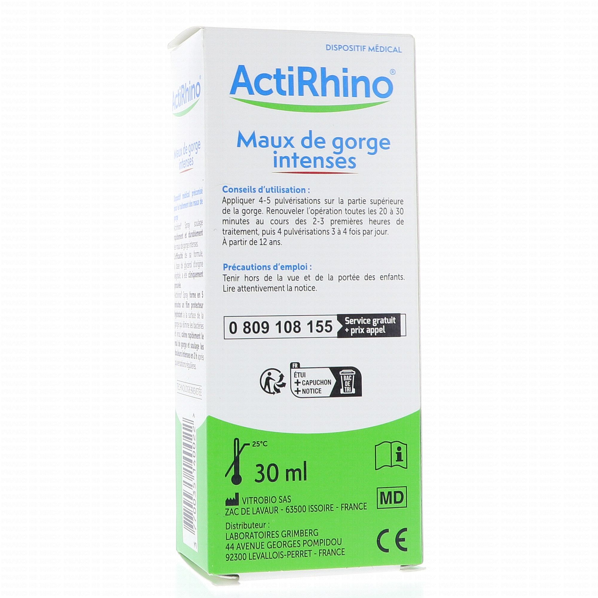 Le spray ActiRhino maux de gorge intenses est un dispositif médical conçu pour soulager rapidement les douleurs de gorge sévères.