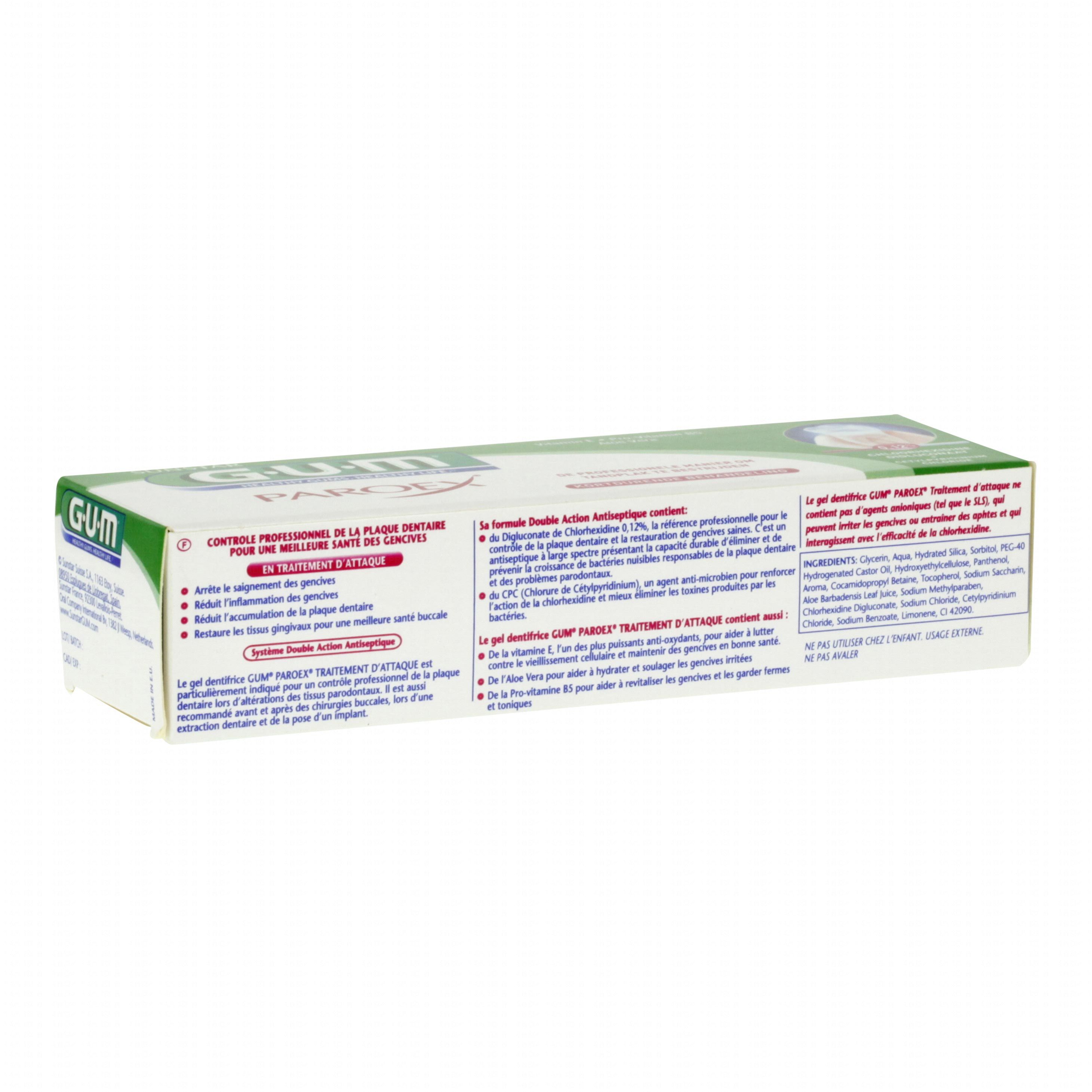 Le gel dentifrice Paroex combat la plaque dentaire et élimine les bactéries causant la fragilité de la gencive. Antibactérien. Non ionique. Arôme menthe. Conditionnement : tube plastique, étui carton.