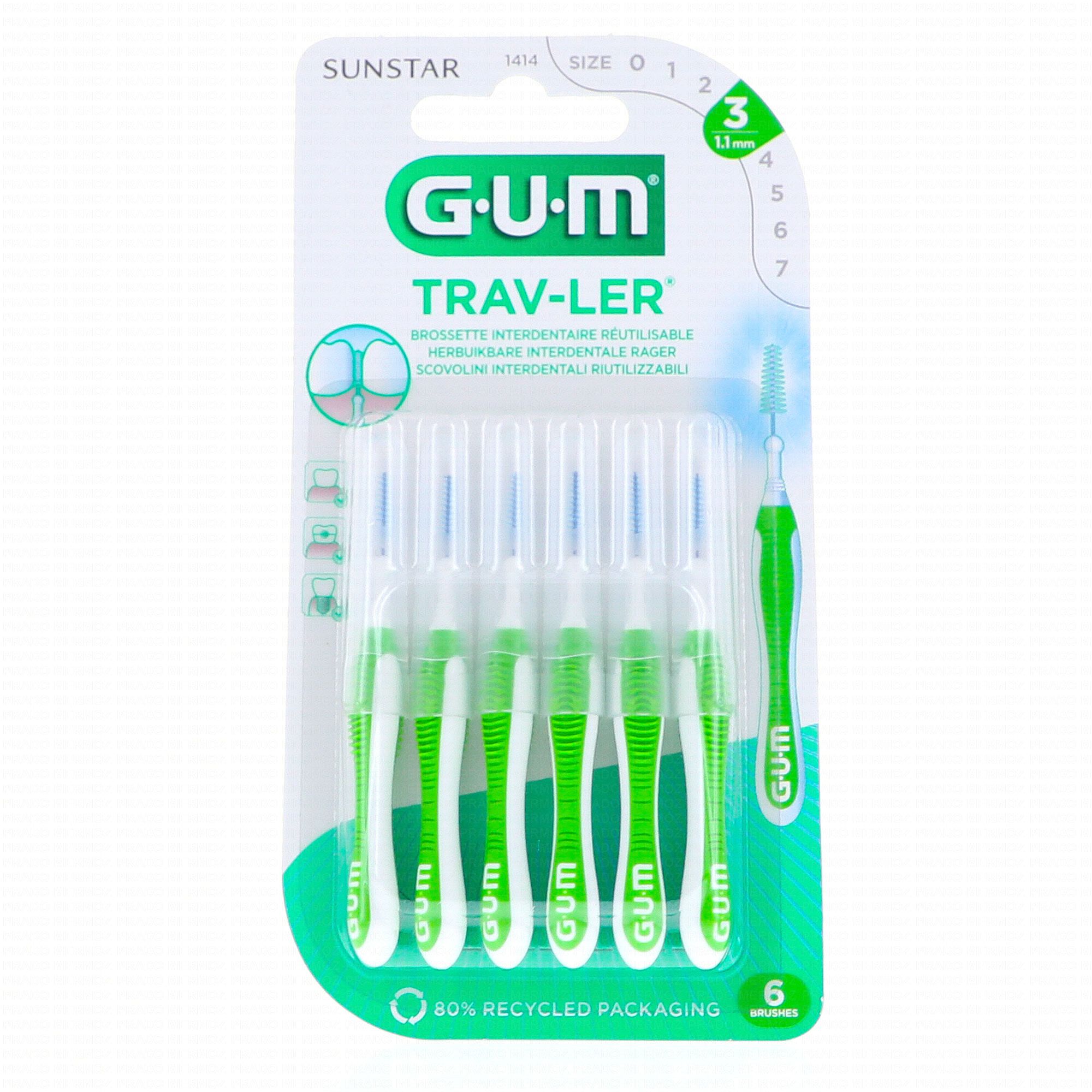 GUM Trav-ler - Brossettes interdentaires n°1414 Taille 3 1.1 mm x6