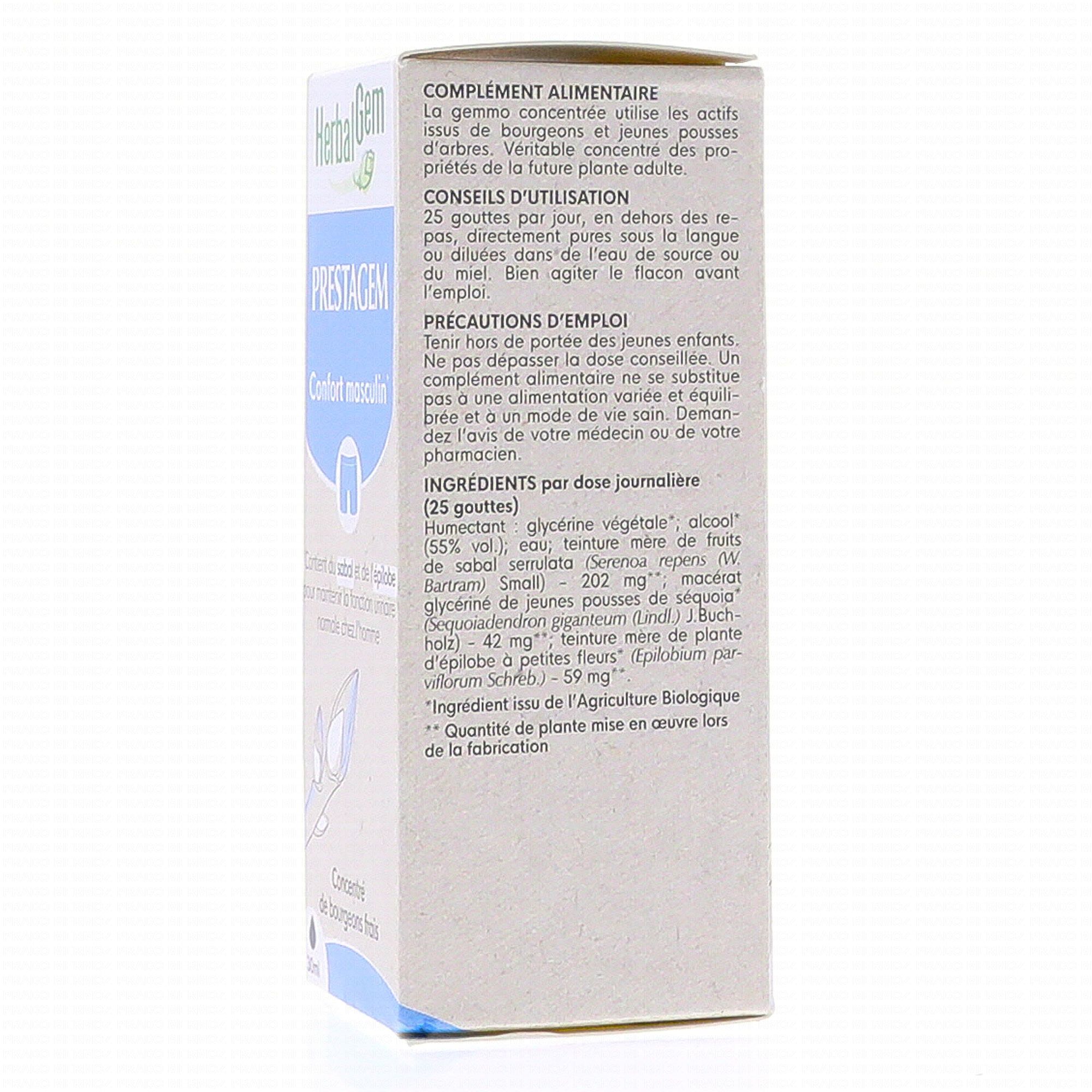 HERBALGEM Concentré de bourgeons frais - Prestagem confort masculin 30ml contient les éléments suivants :