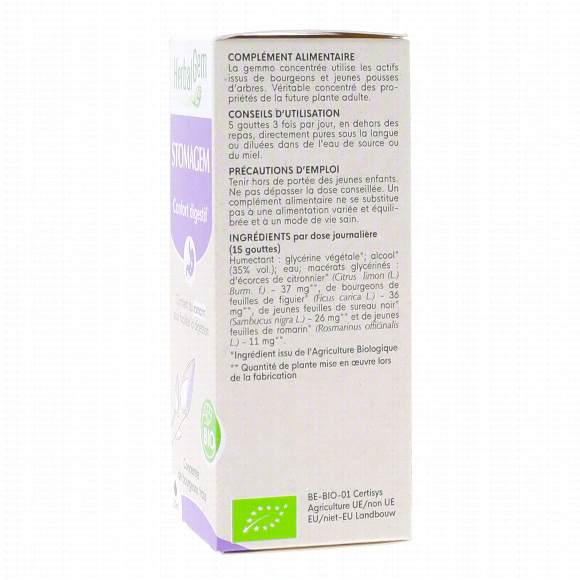 HERBALGEM Stomagem bio GC23 confort digestif contient les éléments suivants :