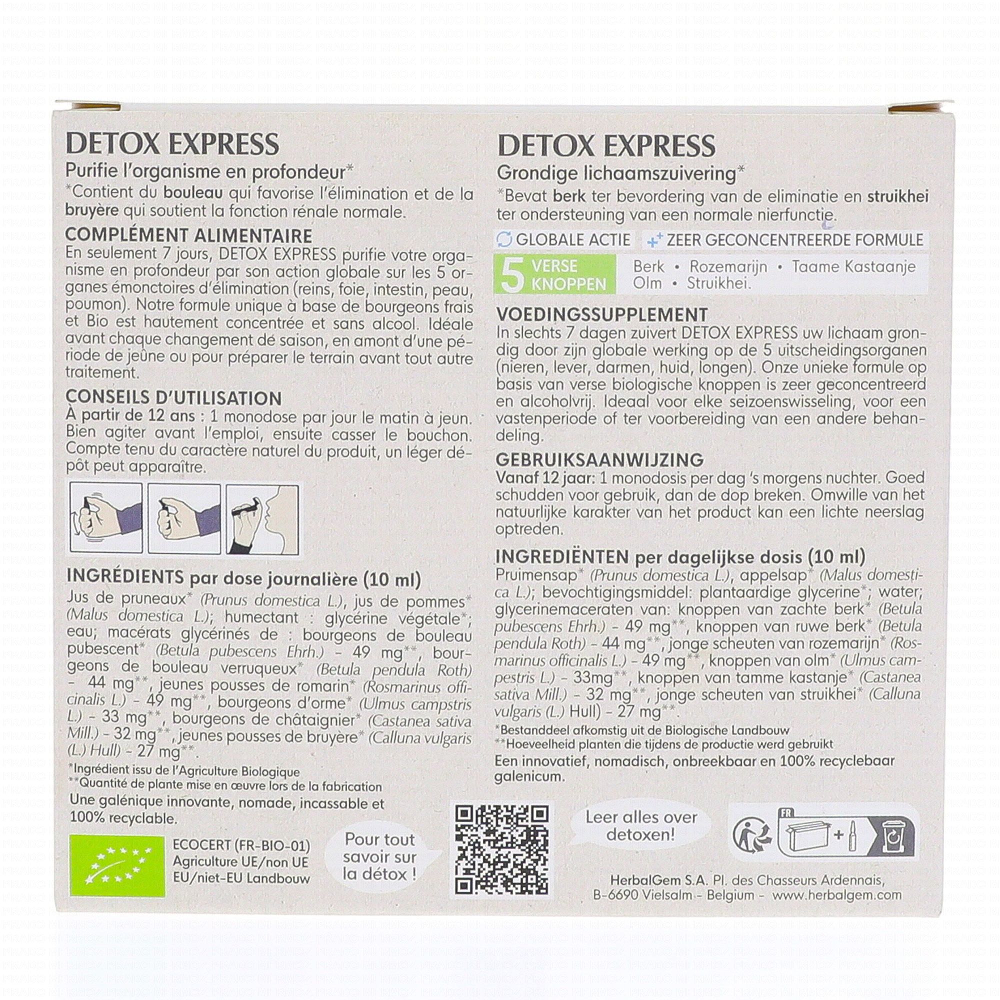 HERBALGEM Detox Express bio 7x10ml contient les éléments suivants :