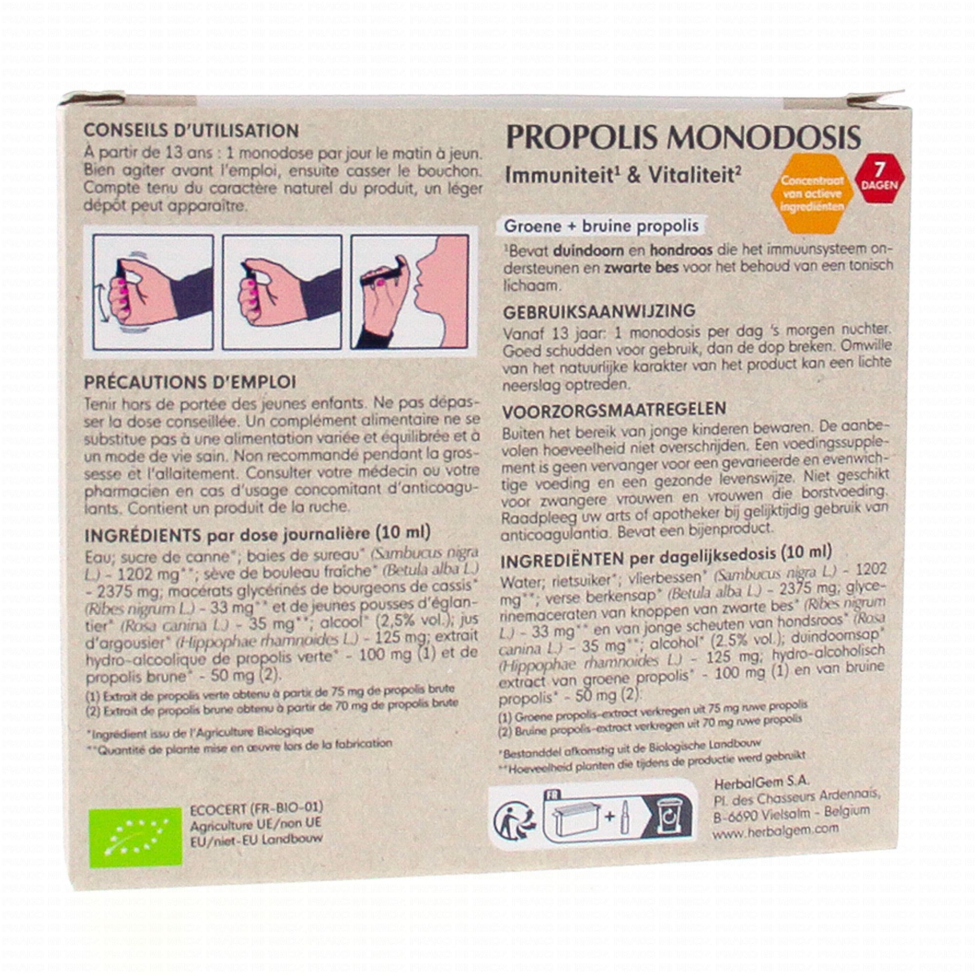 HERBALGEM Monodoses Propolis 7 doses contient les éléments suivants :