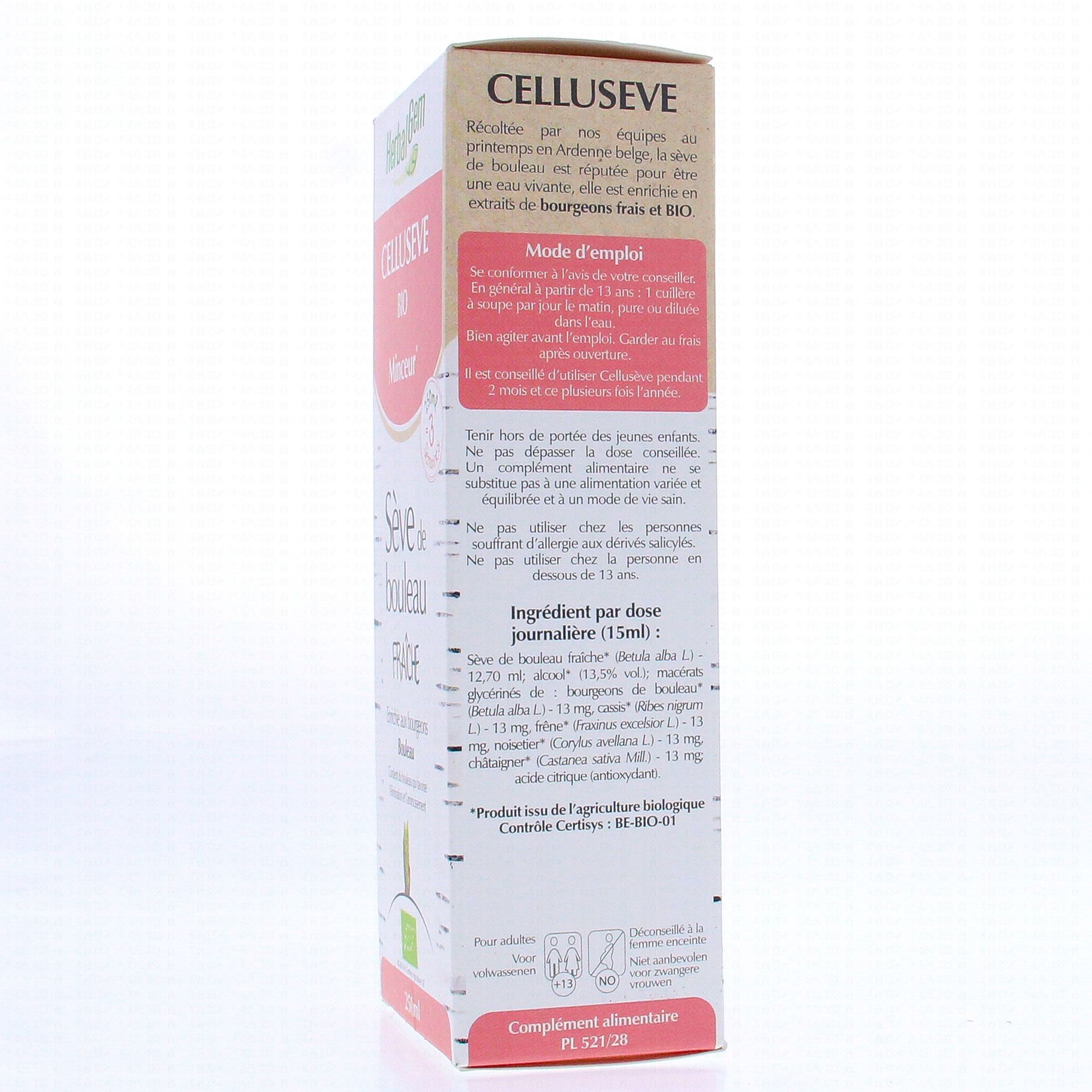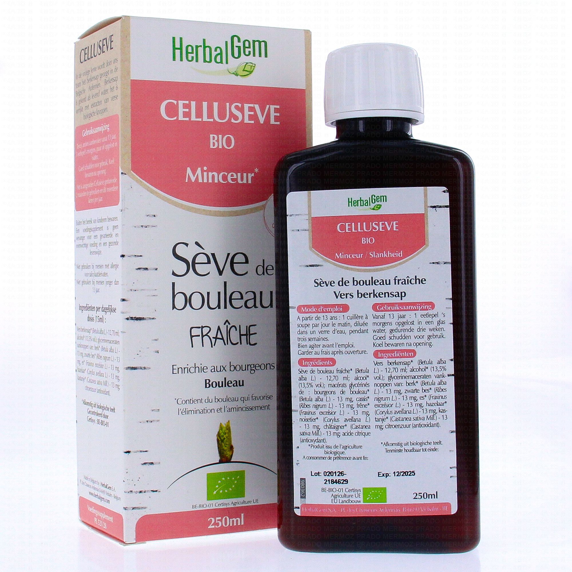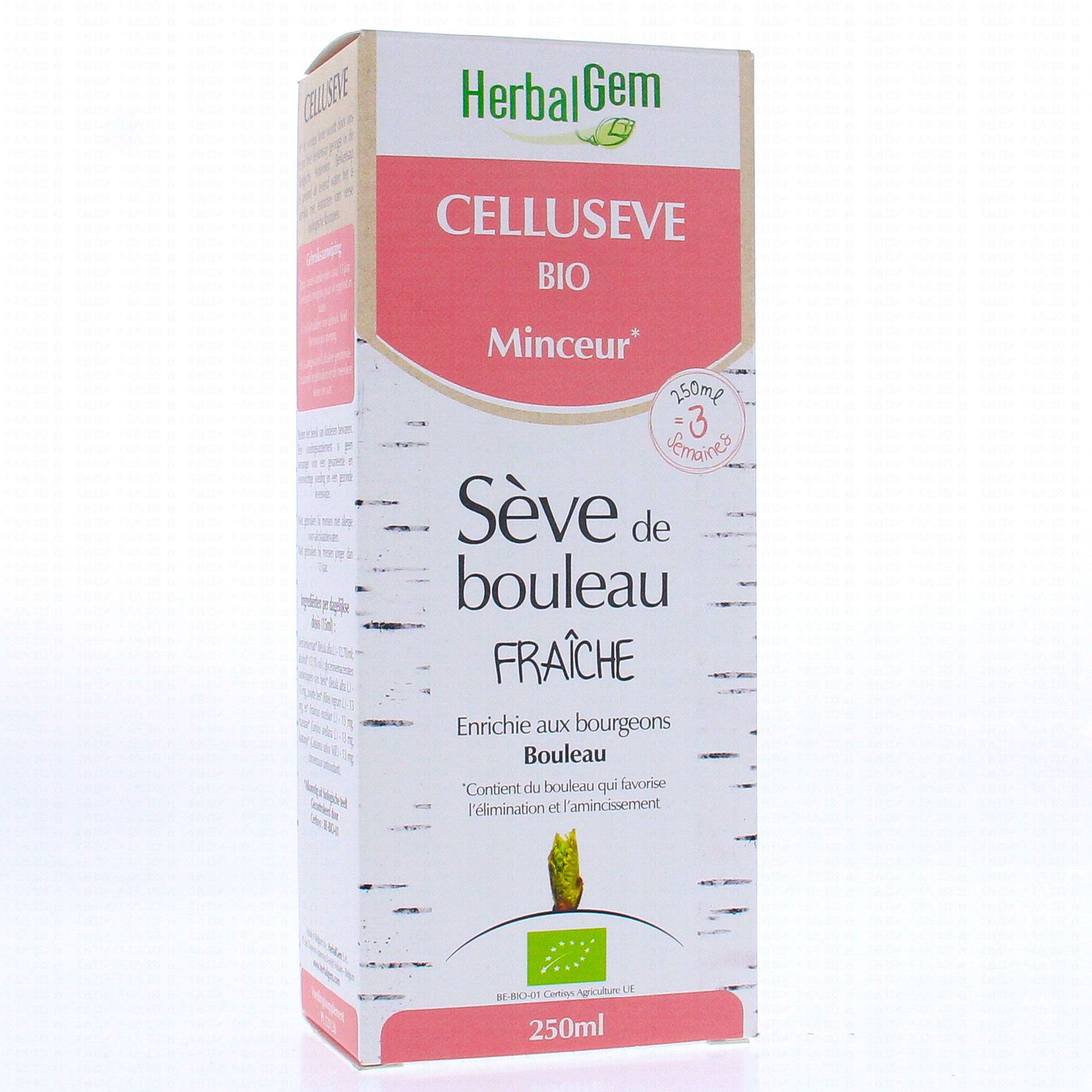 HERBALGEM Celluseve bio minceur - Sève de bouleau fraîche 250ml contient les éléments suivants :