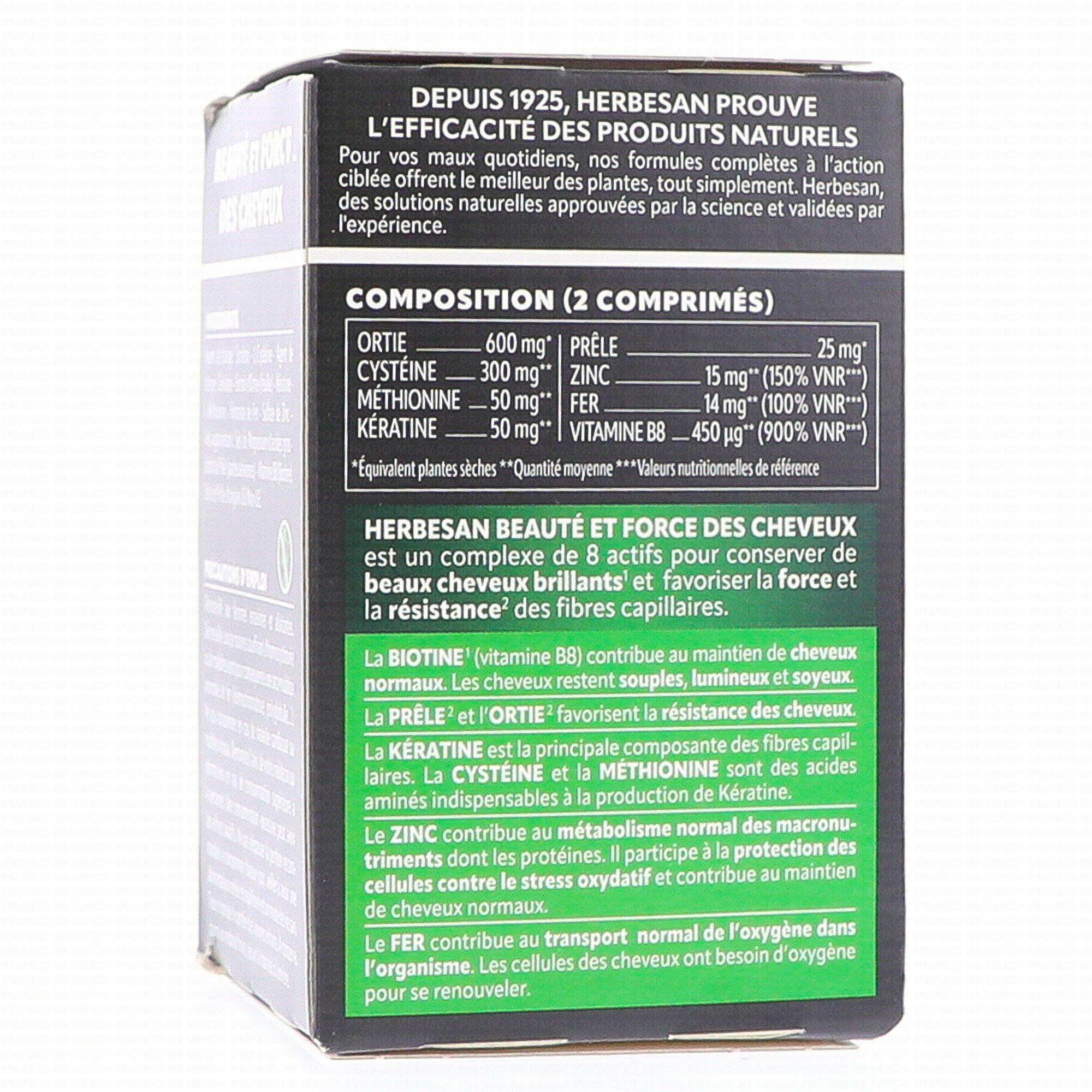 HERBESAN Beauté et Force des cheveux x60 comprimés contient les éléments suivants :