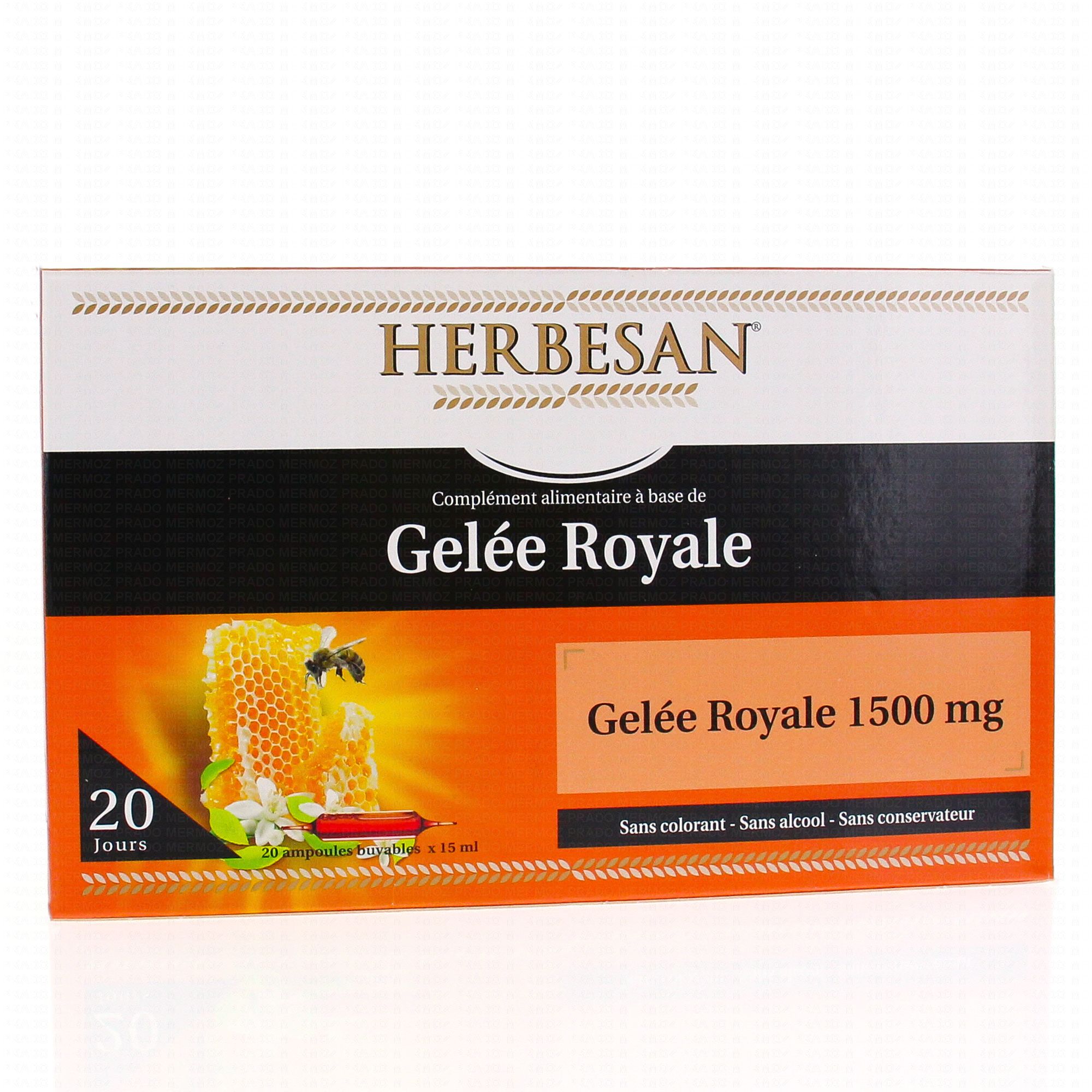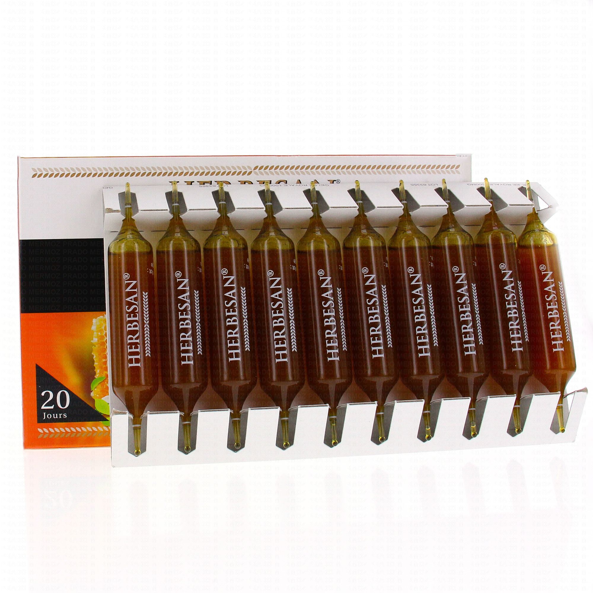 HERBESAN Gelée Royale 20 ampoules est un complément alimentaire qui contribue à renforcer les défenses du corps et à améliorer la vitalité grâce à la présence de Gelée Royale.