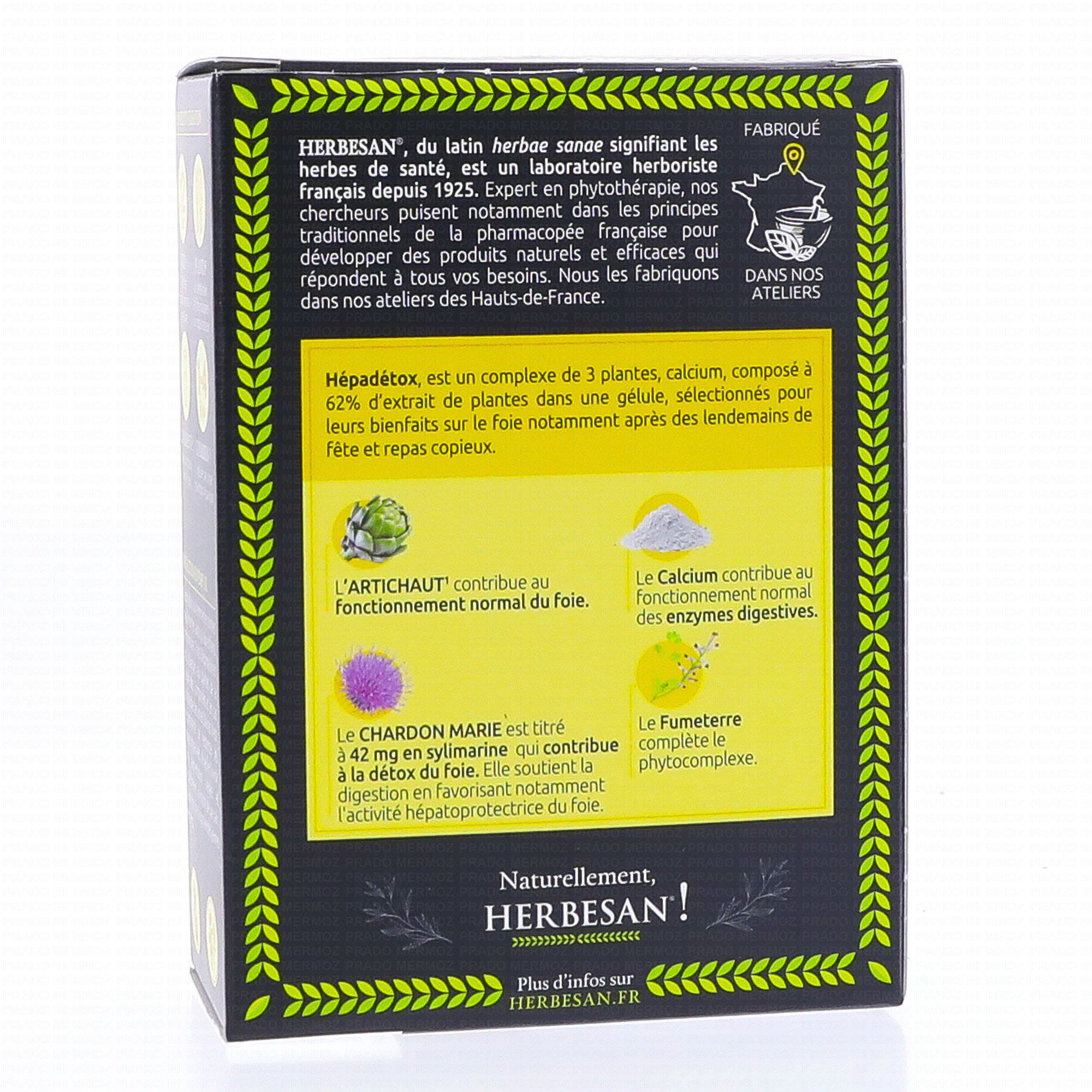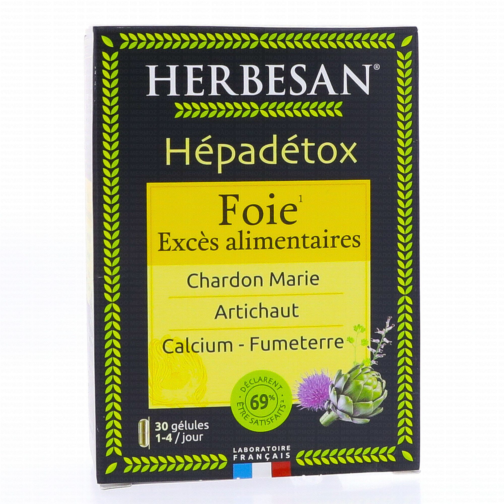 HERBESAN Hépadétox Foie 30 gélules contient les éléments suivants :