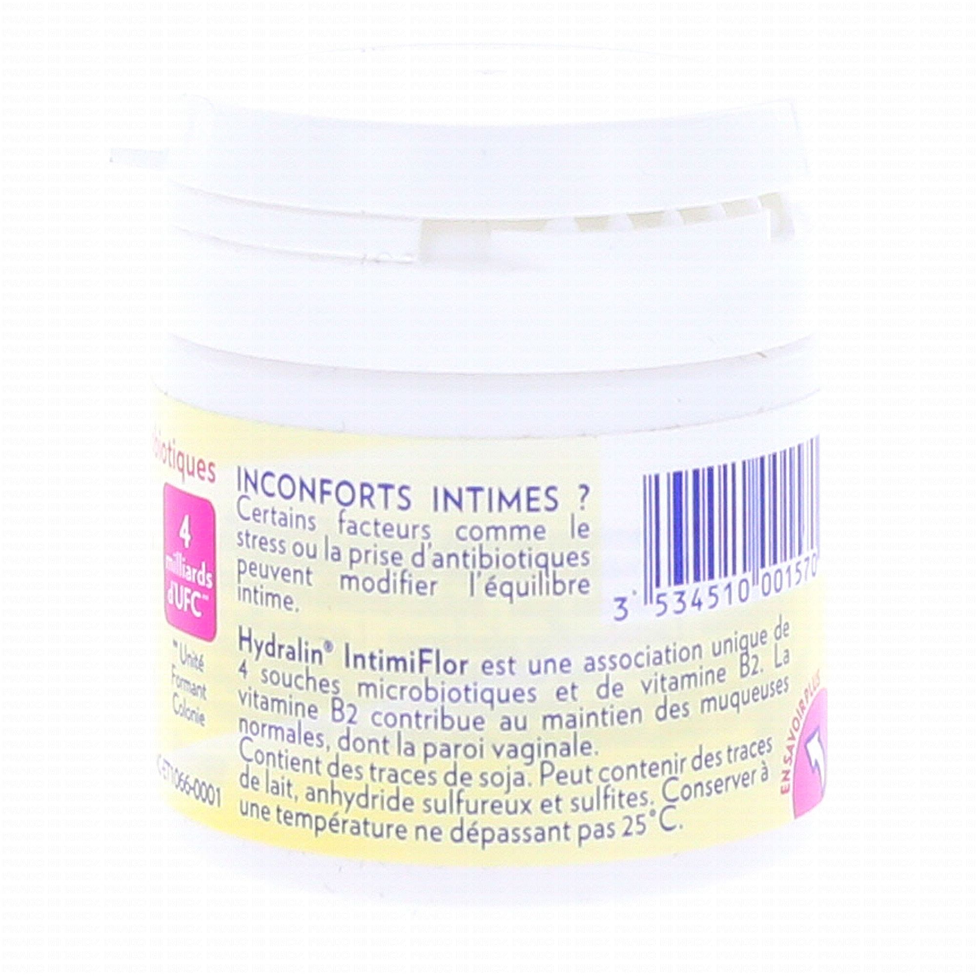 HYDRALI N Intimiflor confort intime x30 gélules est un complément alimentaire qui contribue à restaurer la flore vaginale grâce à la présence de la souche Lactobacillus plantarum. La vitamine B2 aide au maintien de muqueuses normales.