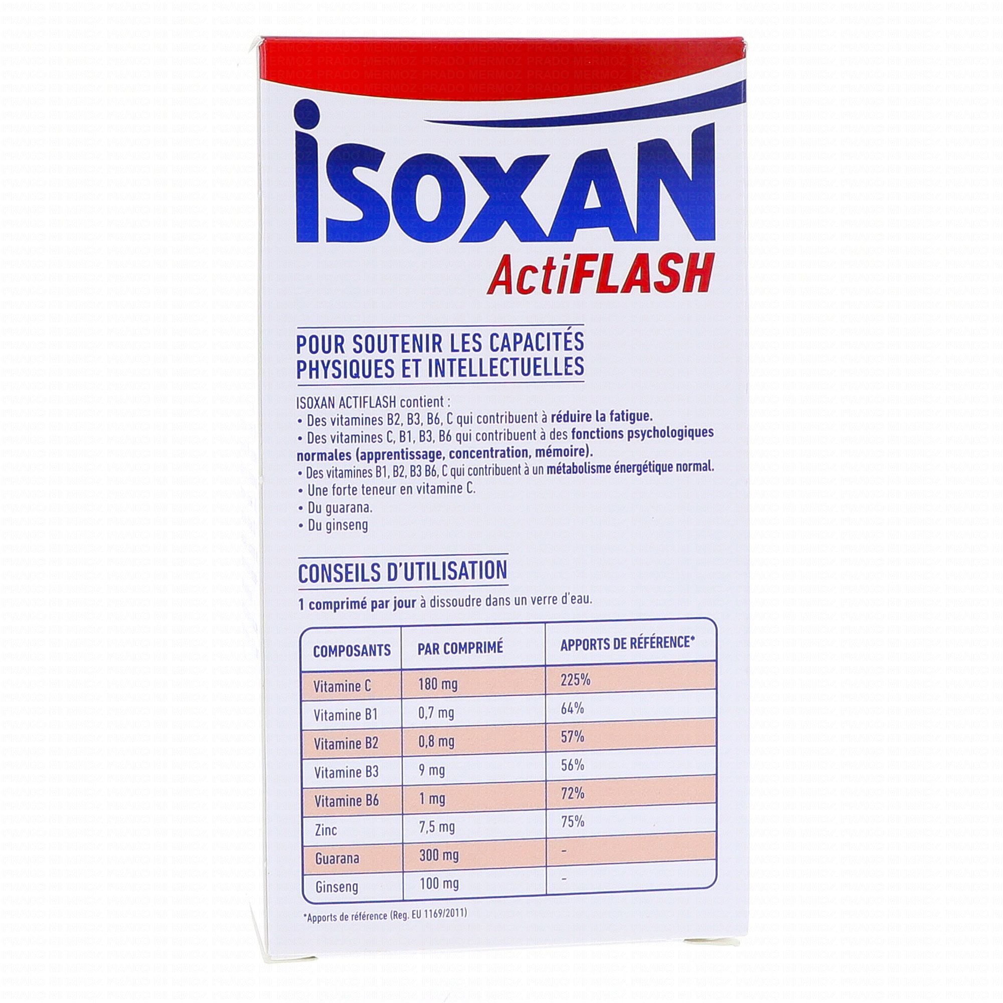 ISOXAN Actiflash boîte de 28 comprimés contient les éléments suivants :