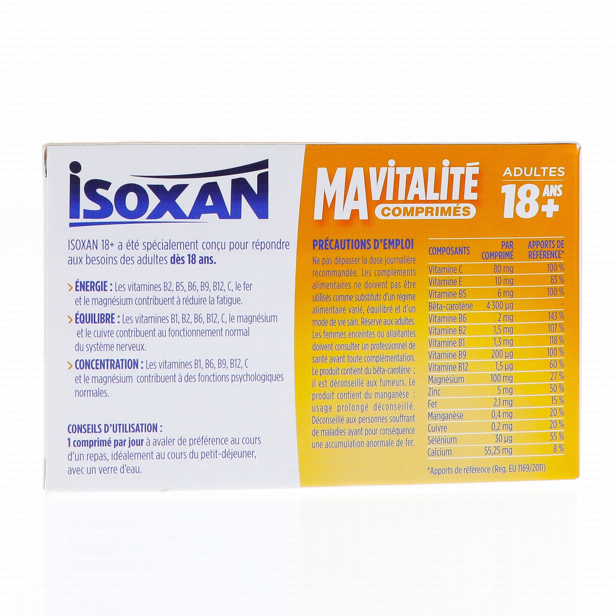 ISOXAN Ma Vitalité adulte x30 comprimés contient les éléments suivants :