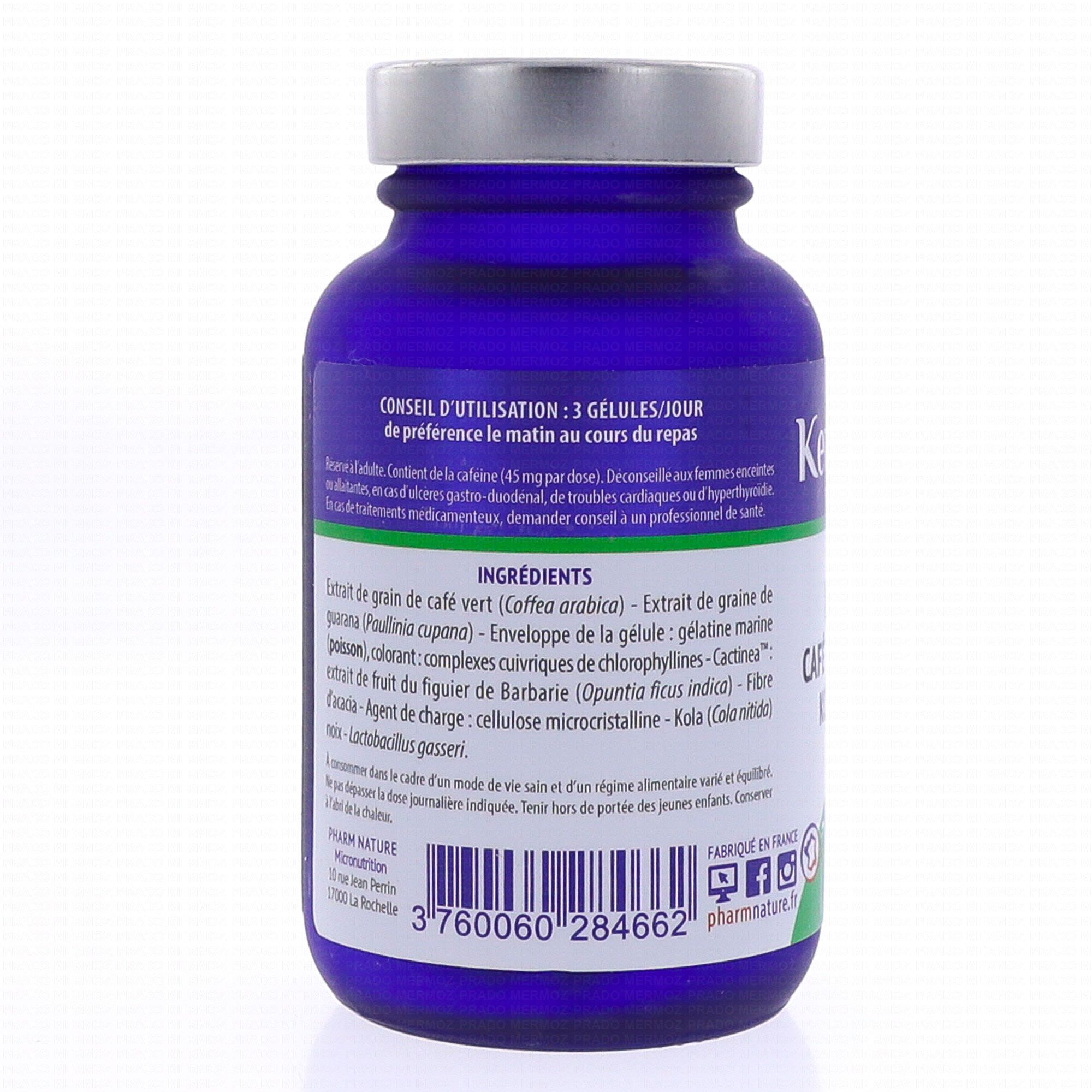 Pour 2 gélules : Svetol : café vert décaféine (Coffea robusta) grains extrait, guarana (Paullinia cupana) graine extrait, Cactinéa® : figue de barbarie (Opuntia ficus indica) fruit extrait:150mg, Clarinol® : huile de carthame à 60 % CLA. Tunique : gélatine marine.