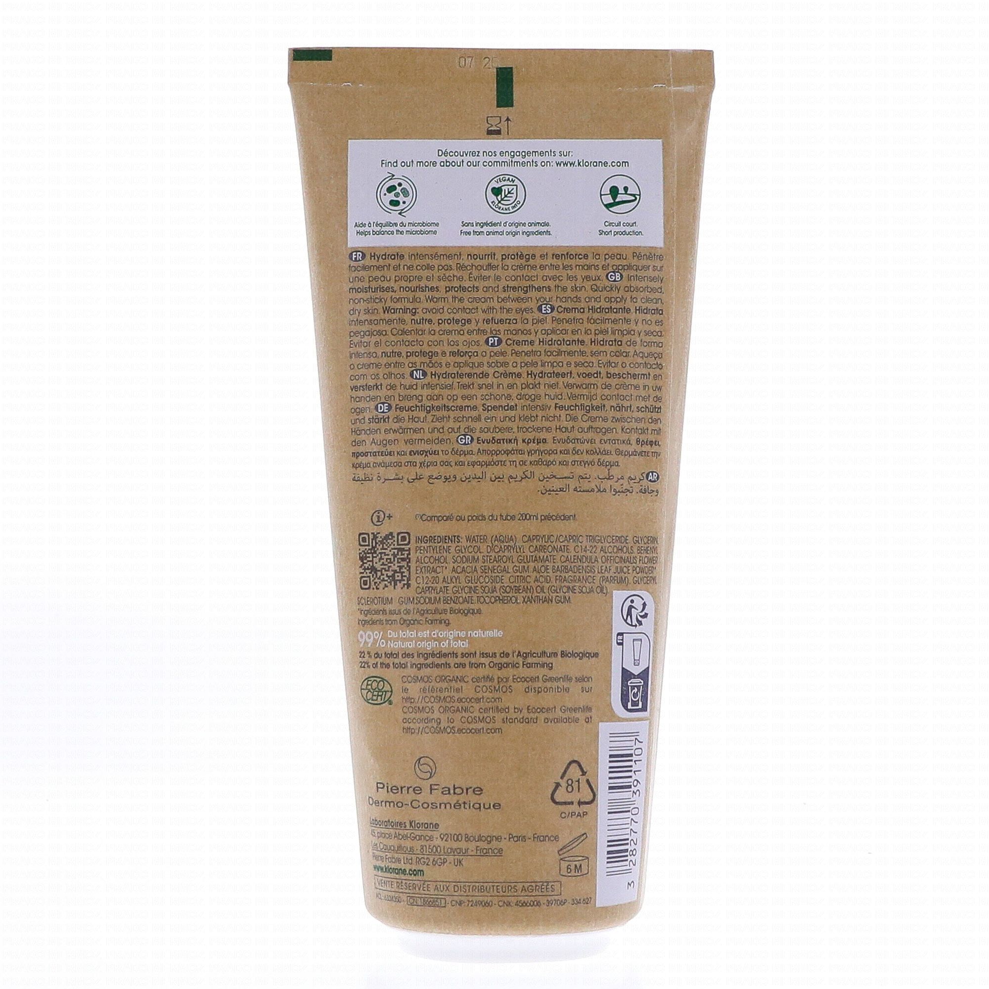 KLORANE Bébé crème hydratante au calendula apaisant tube 200ml