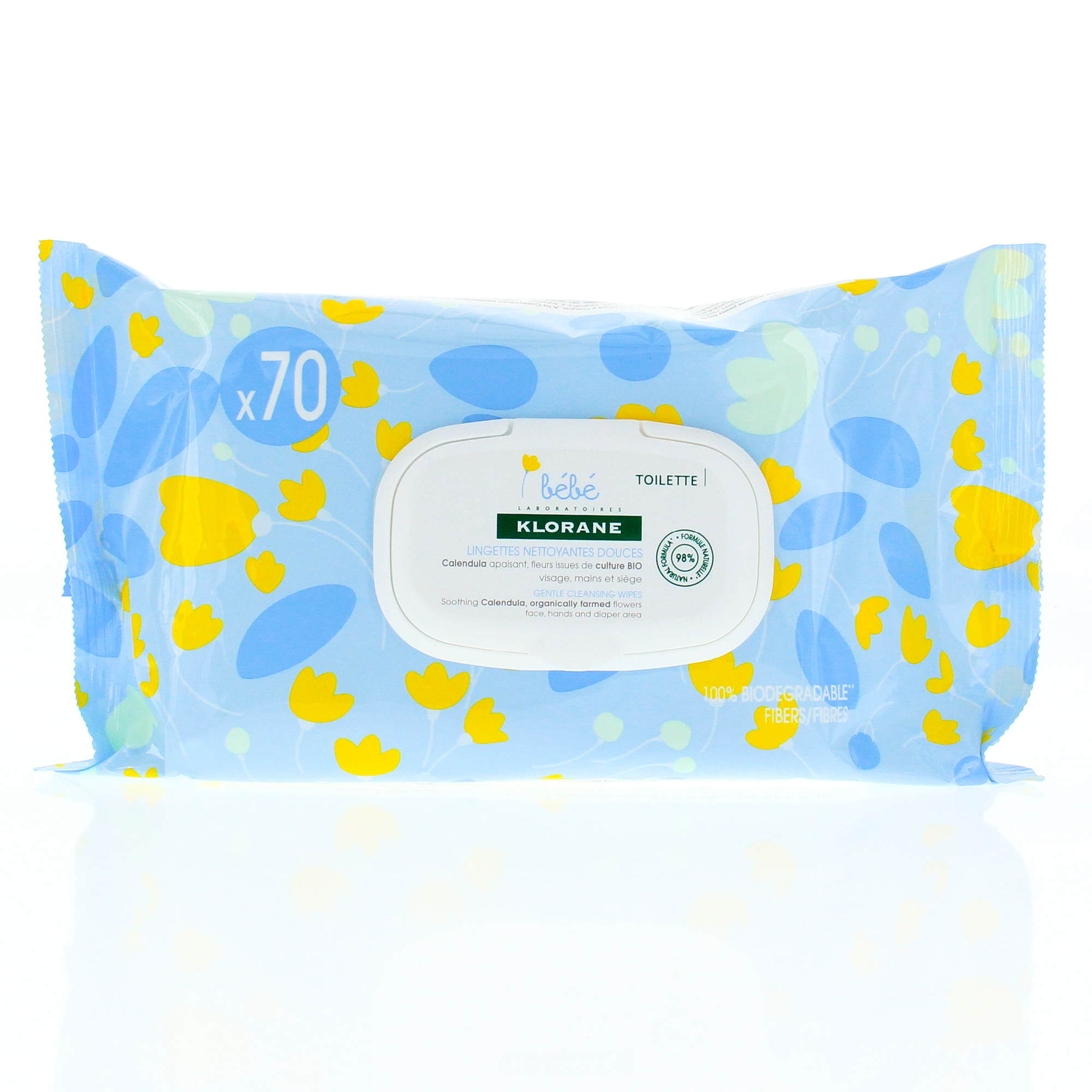 KLORANE Bébé lingettes nettoyantes douces grand modèle (70 lingettes)