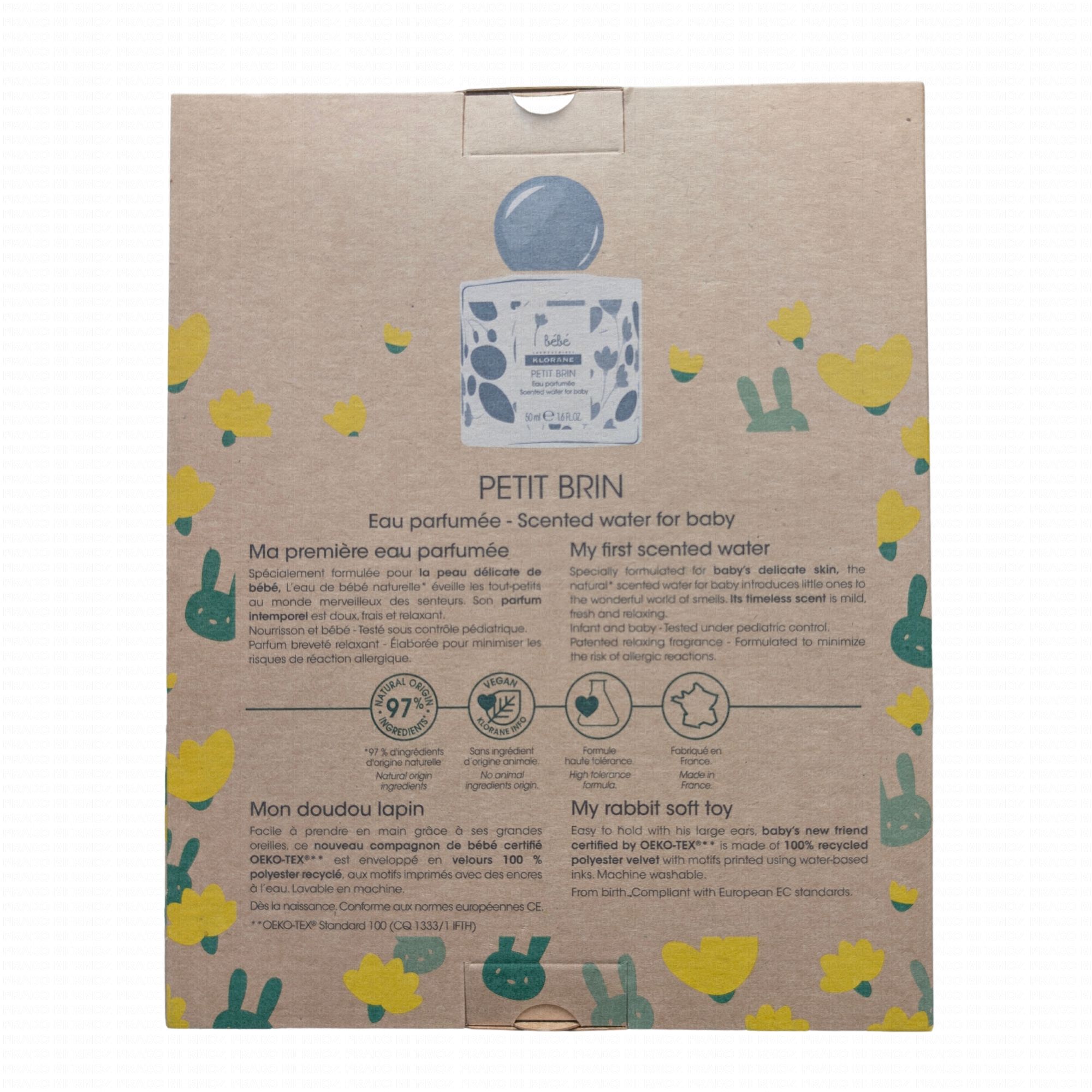 Eau de bébé parfumée "petit brin" sans alcool + lapin bleu.