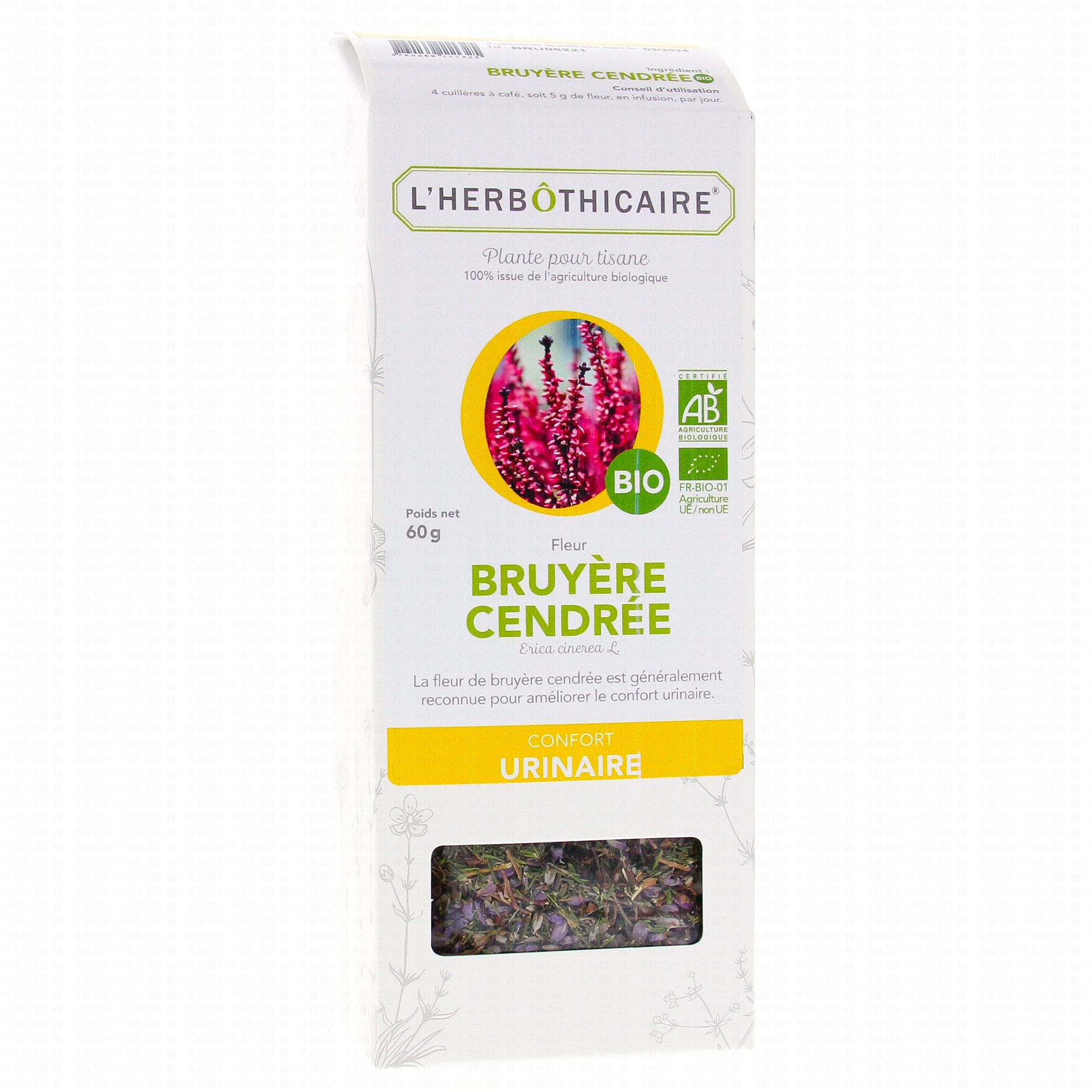 L'HERBÔTHICAIRE Fleur Bruyère Cendrée Bio Plante pour tisane 60g est un complément alimentaire qui est traditionnellement employée pour soutenir la diurèse.