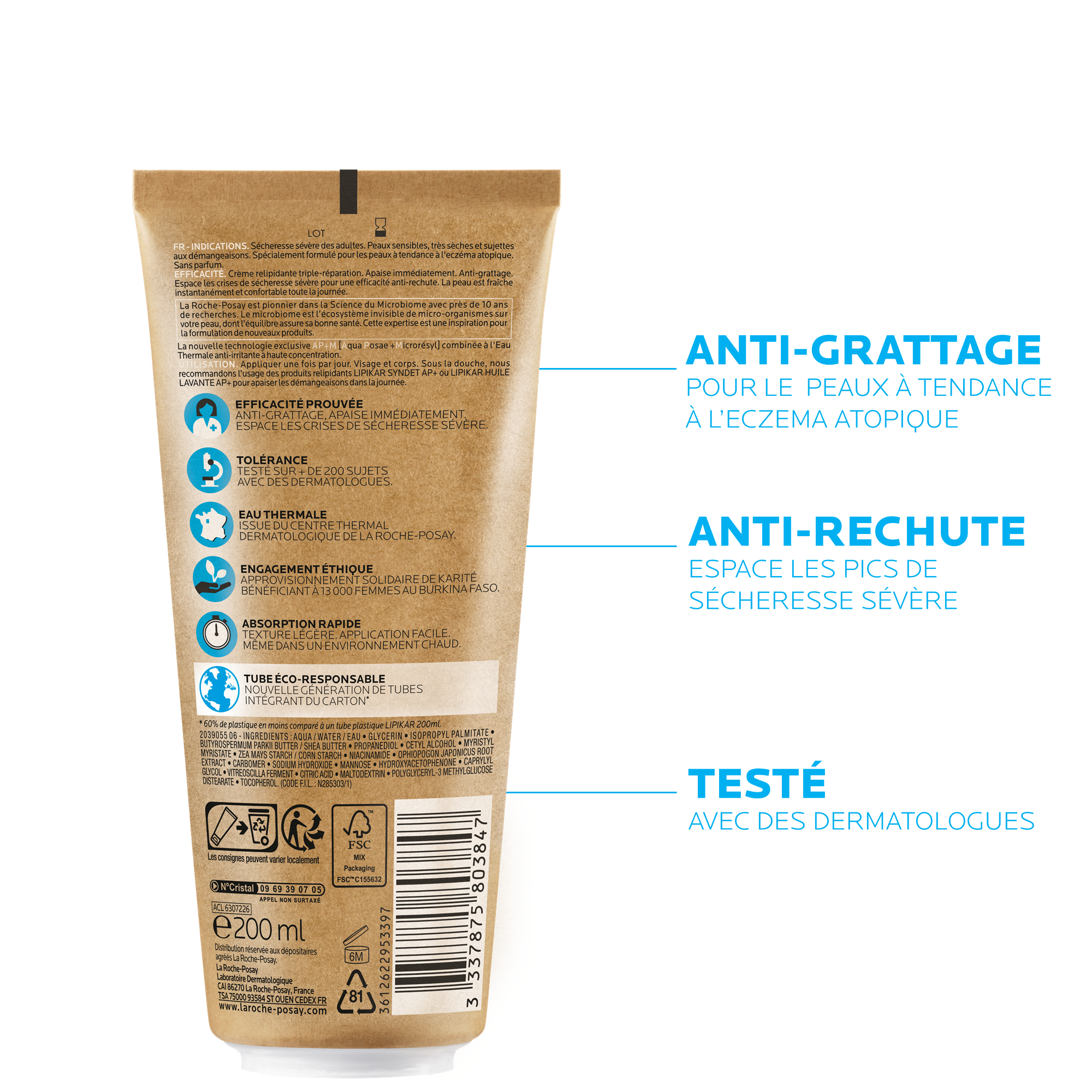 Découvrez la crème relipidante La Roche Posay enrichie en eau thermale. Elle favorise la réparation de la peau tout en l'apaisant et a des propriétés anti grattage et anti rechute. Sa texture légère procure une sensation de confort, votre peau est fraiche et hydratée. Son tube éco responsable à base de carton est respectueux de l'environnement.