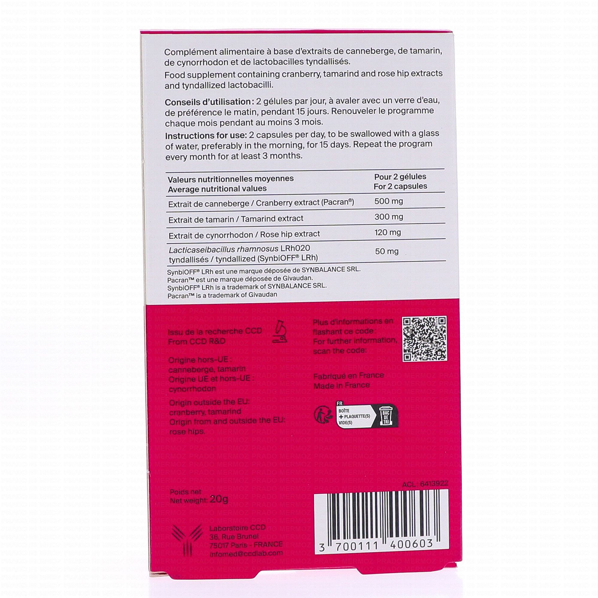 LABORATOIRE CCD Gyndelta Microbiotta confort urinaire contient les éléments suivants :