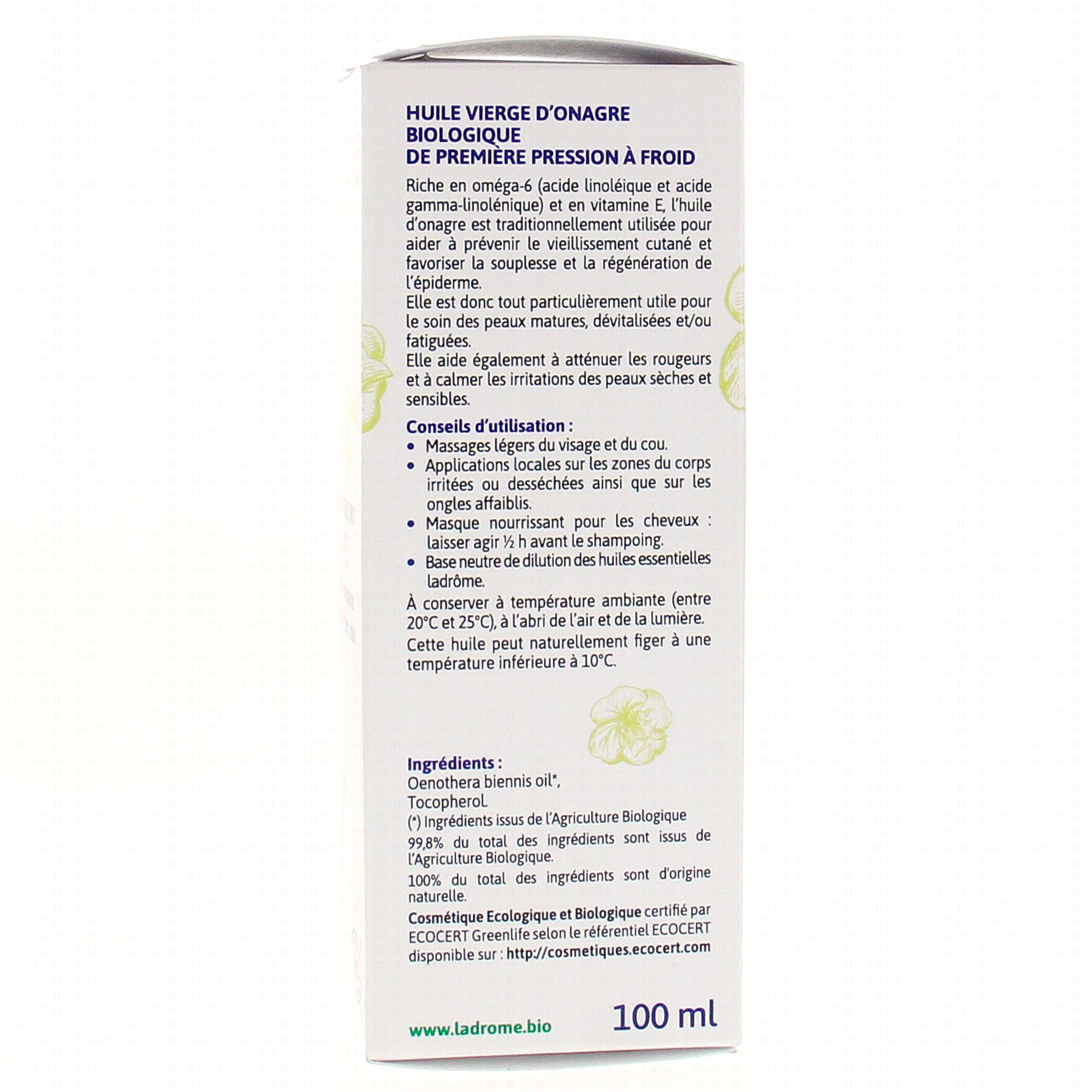 Spécialement conçue pour aider à prévenir le vieillissement cutané, l'huile d'onagre Ladrôme favorise la souplesse et la régénération des peaux matures, dévitalisées et fatiguées. Elle hydrate et aide à atténuer les rougeurs et irritations des peaux sensibles.