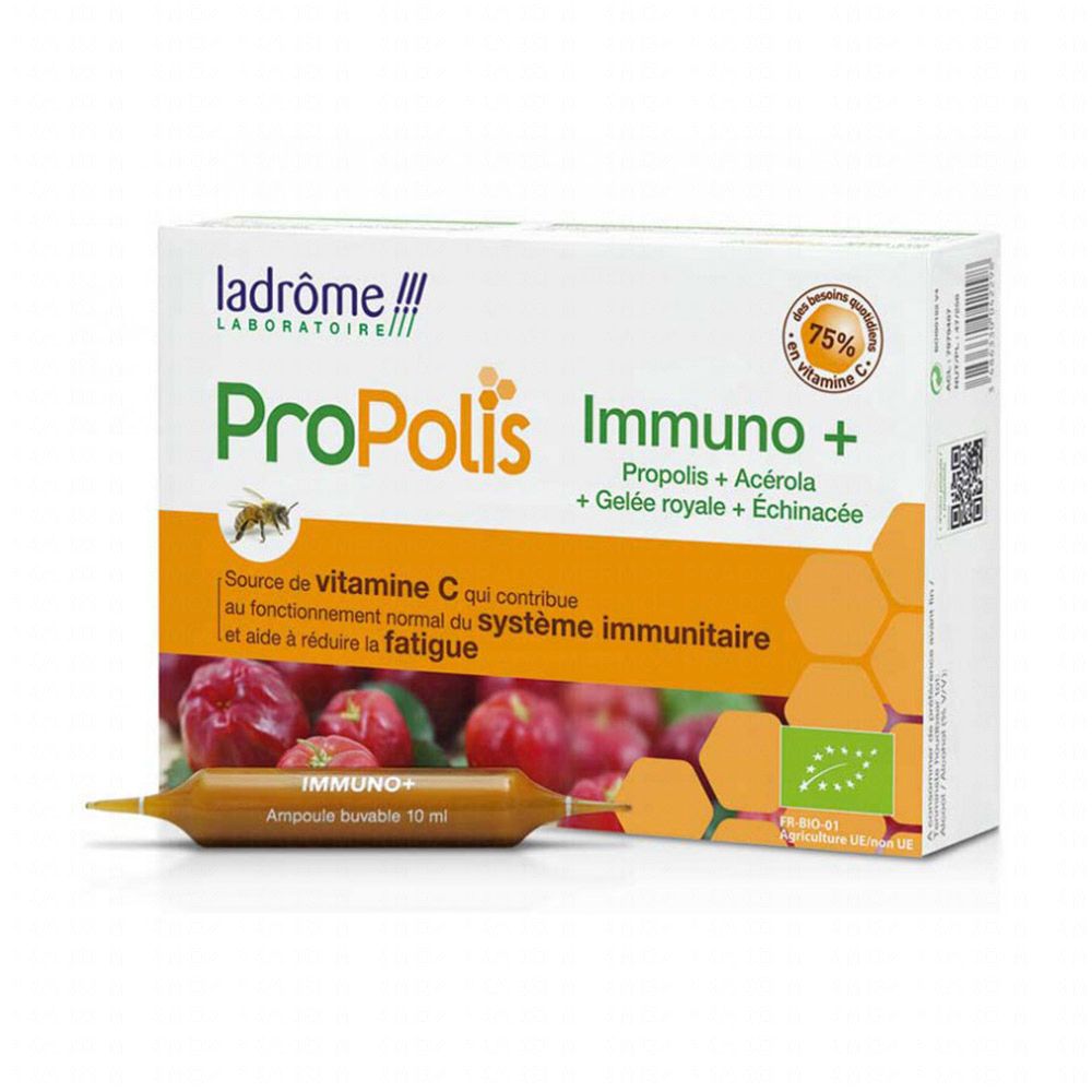 LADRÔME Propolis Immuno+ bio 20 ampoules de 10ml grâce au propolis soutien le système immunitaire.