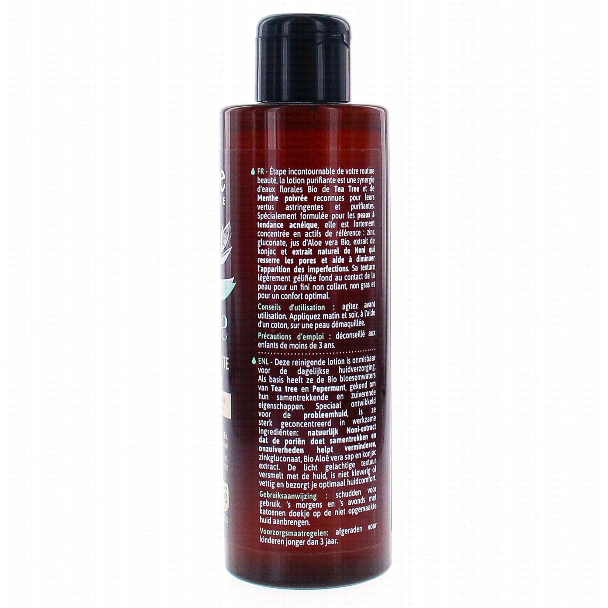 Étape incontournable de votre routine beauté, la lotion purifiante est une synergie d'eaux florales Bio de Tea Tree et de Menthe poivrée reconnues pour leurs vertus astringentes et purifiantes. Spécialement formulée pour les peaux à tendance acnéique, elle est fortement concentrée en actifs de référence : zinc gluconate, jus d'Aloe vera Bio, extrait de konjac et extrait naturel de Noni qui resserre les pores et aide à diminuer l'apparition des imperfections.