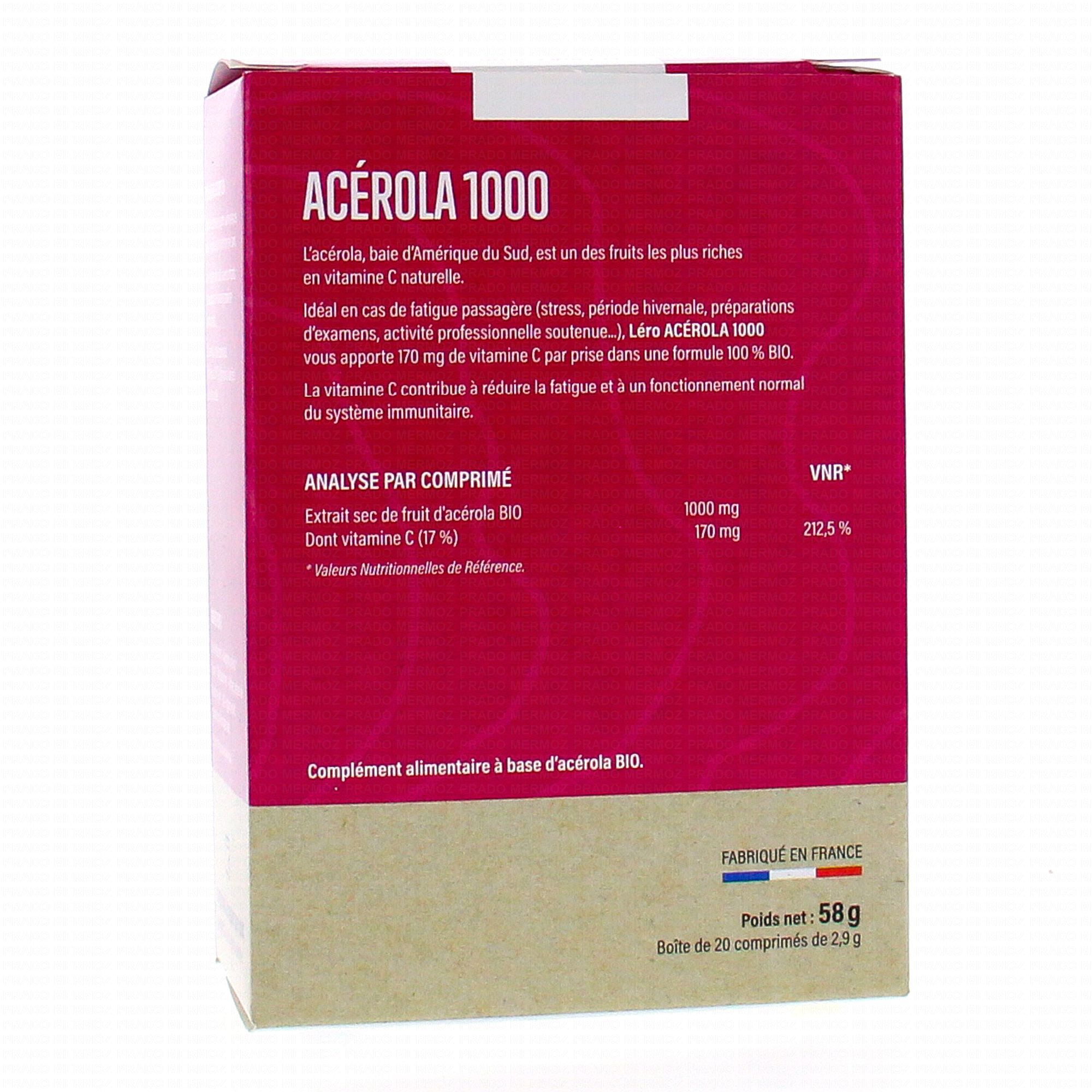 LERO Acérola 1000 20 comprimés contient les éléments suivants :