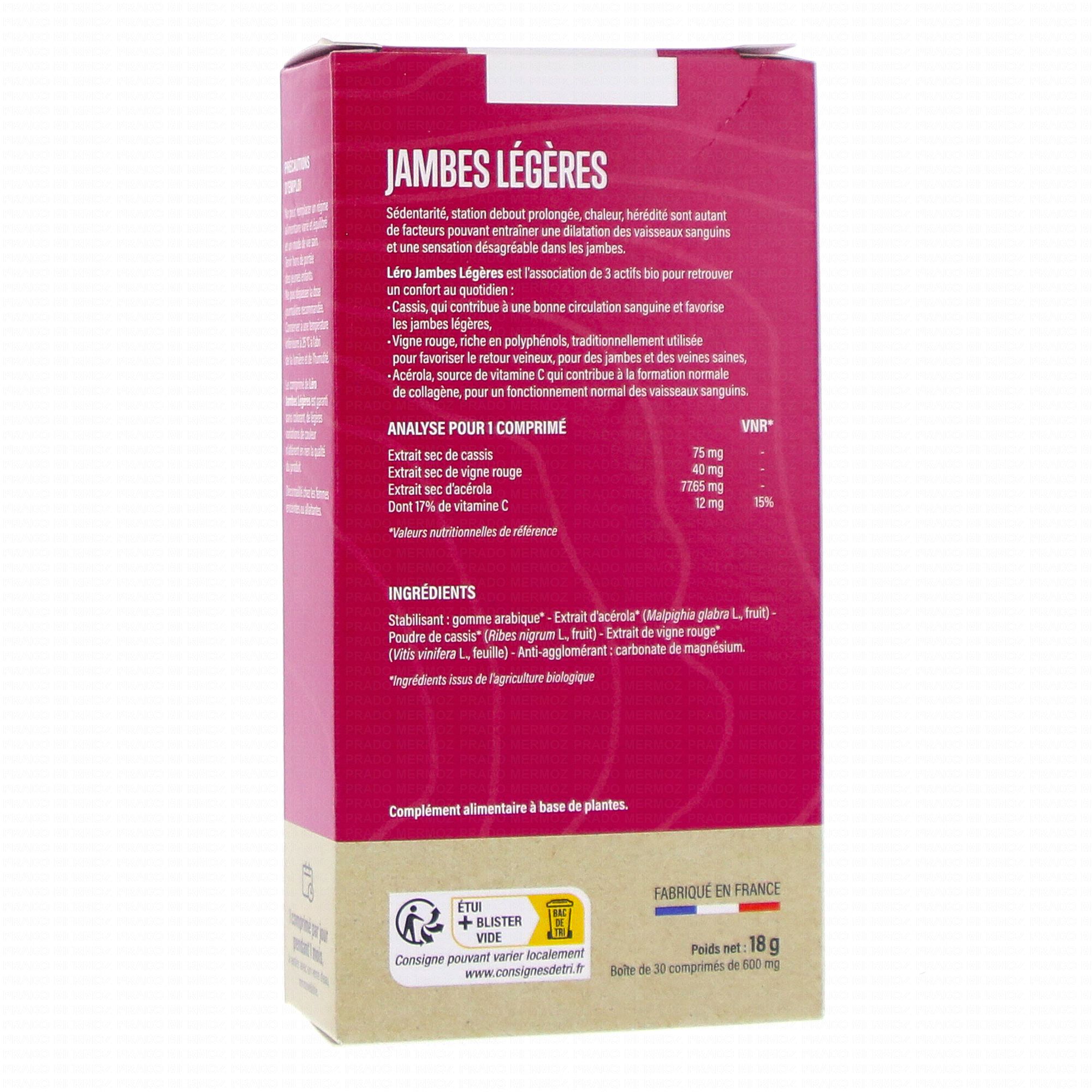 Léro Jambes légères x30 comprimés contient les éléments suivants :