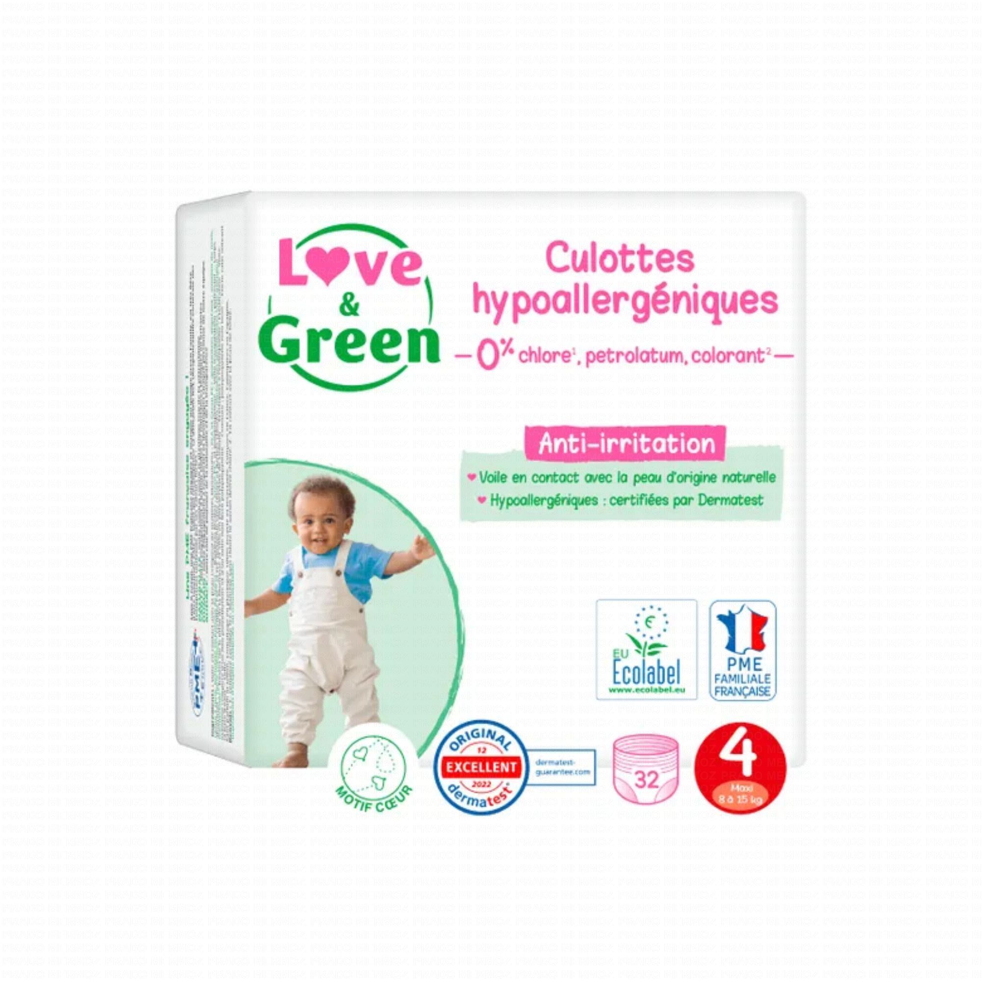 LOVE&GREEN Couches Culottes hypoallergéniques taille 4 maxi - 8à15kg x32 couches