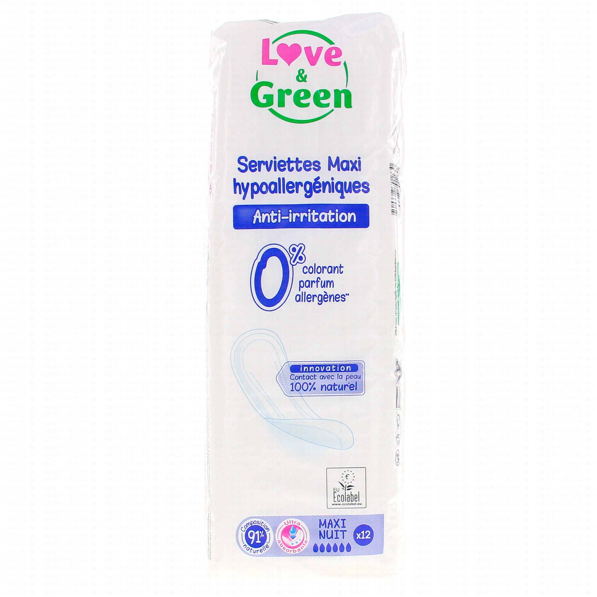 LOVE&GREEN Serviettes Maxi Hypoallergéniques Anti irritation x12