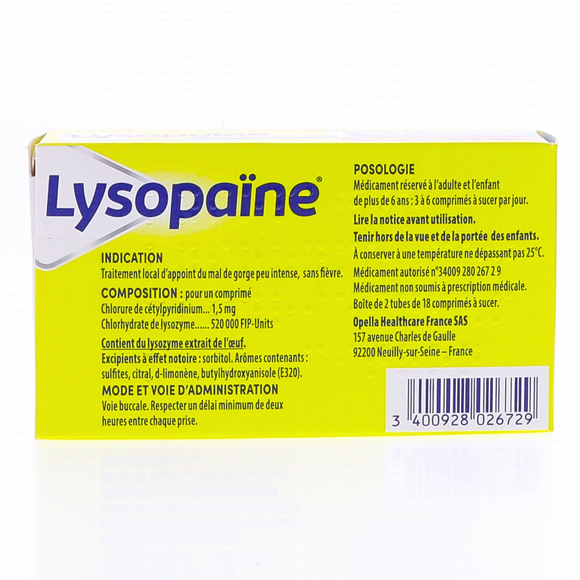 BOEHRINGER Lysopaïne maux de gorge cetylpyridinium lysozyme sans sucre, 2 tubes polypropylène de 18 comprimés à sucer édulcorés au sorbitol et à la saccharine