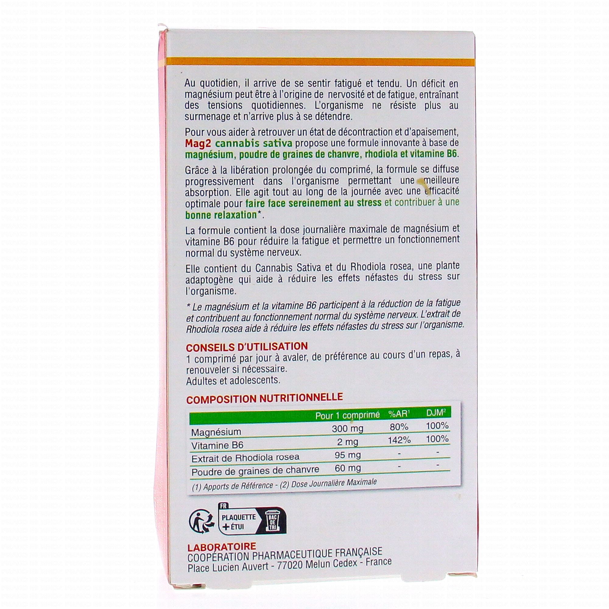 MAG 2 Cannabis Sativa Détente Relaxation Fatigue x30 comprimés