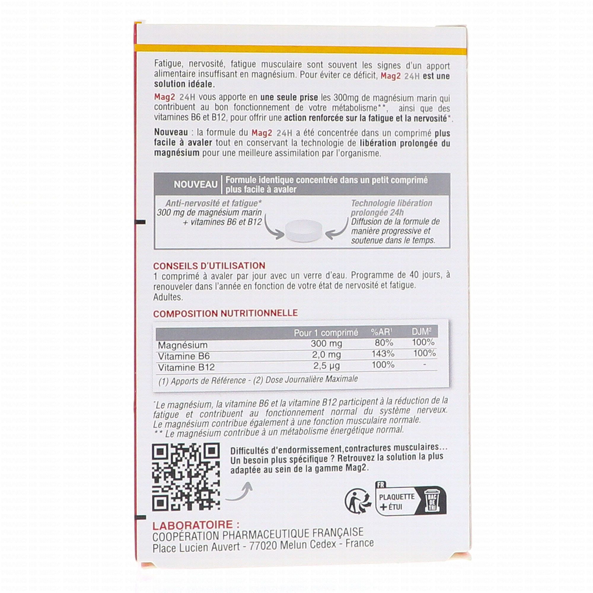 MAG2 24H Magnésium marin 300mg + B6 + B12 x40 comprimés