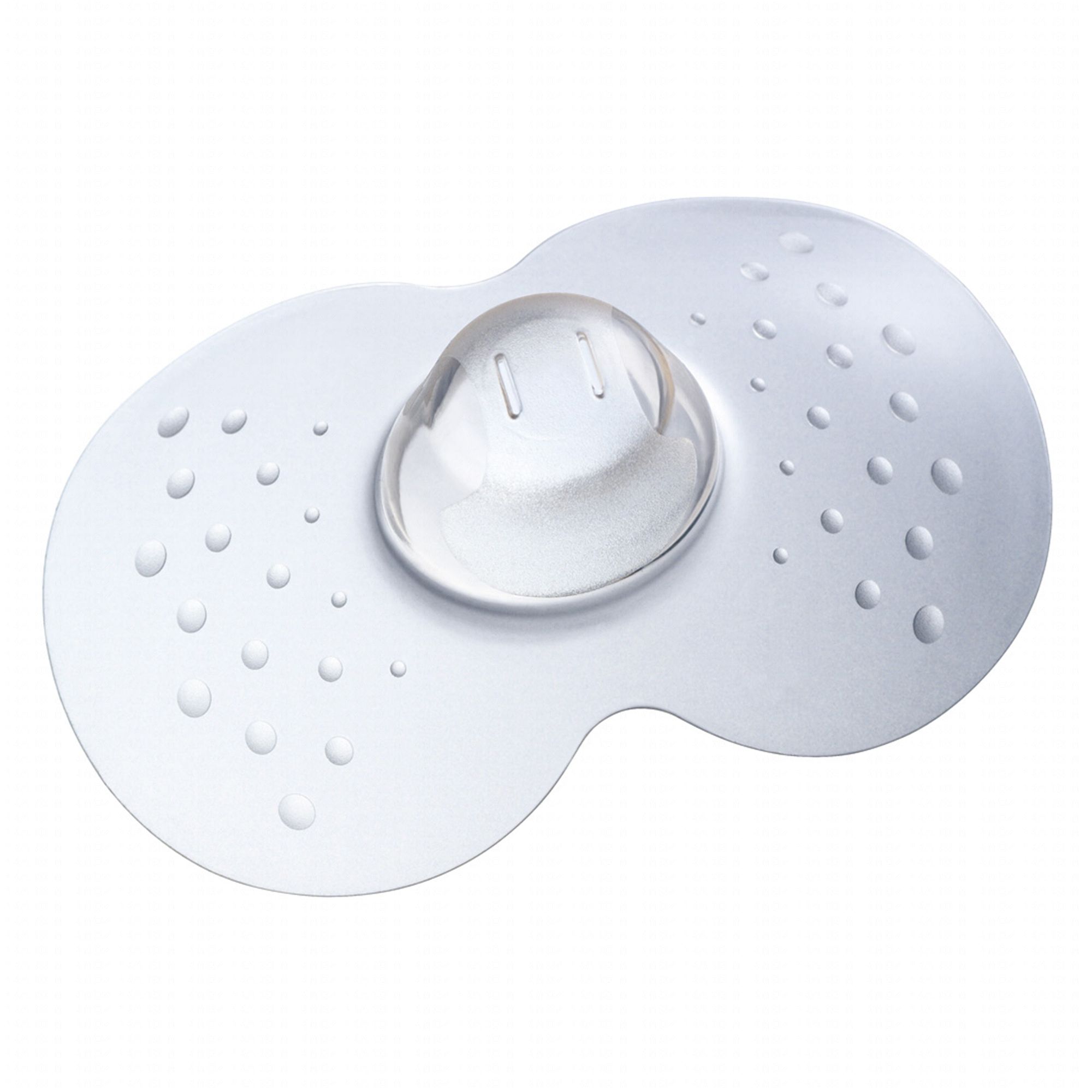 Surface extra-douce en silicone. Laisse passer l'air entre le bout de sein et le bébé grâce à sa surface avec reliefs ainsi que sa forme spécifique permettant de sentir la peau de maman et son odeur. Gout neutre, odeur neutre. Sans BPA. Silicone extra-mince.