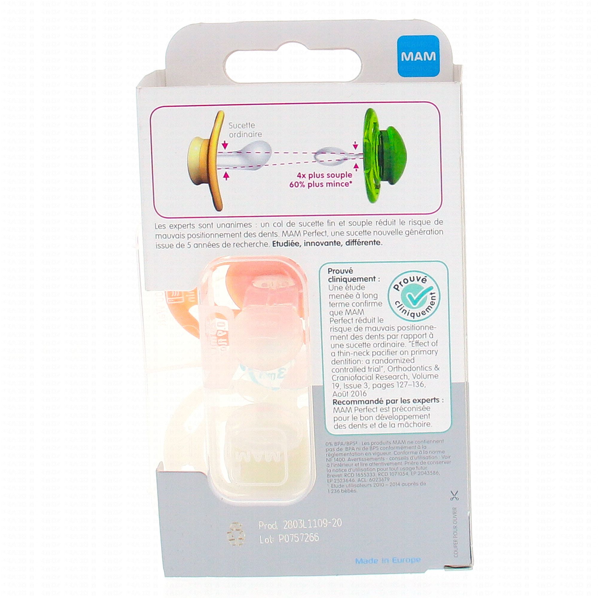 MAM Duo Sucettes +6 mois perfect silicone blanc / orange
