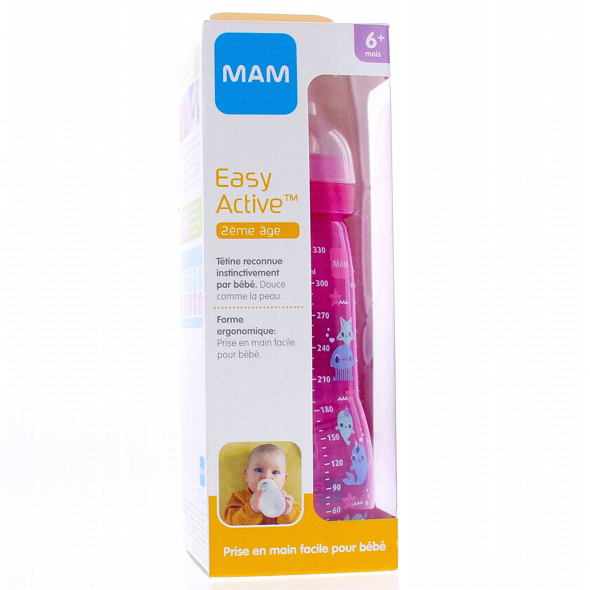 MAM Easy Active - Biberon 2ème âge 330ml rose pieuvre