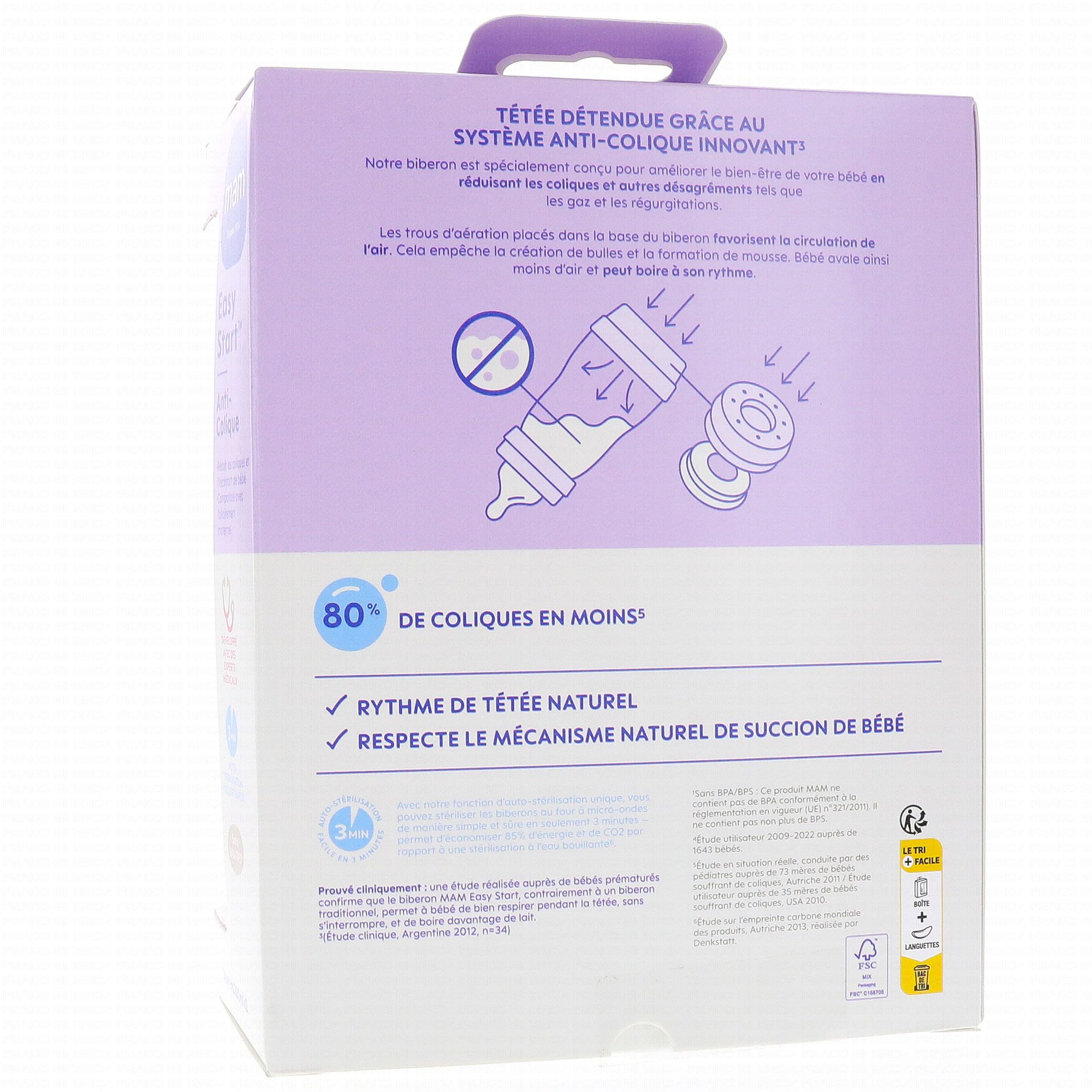 MAM Easy Start Anti-Colique biberon débit 2 260ml lot de 2 rose et sable