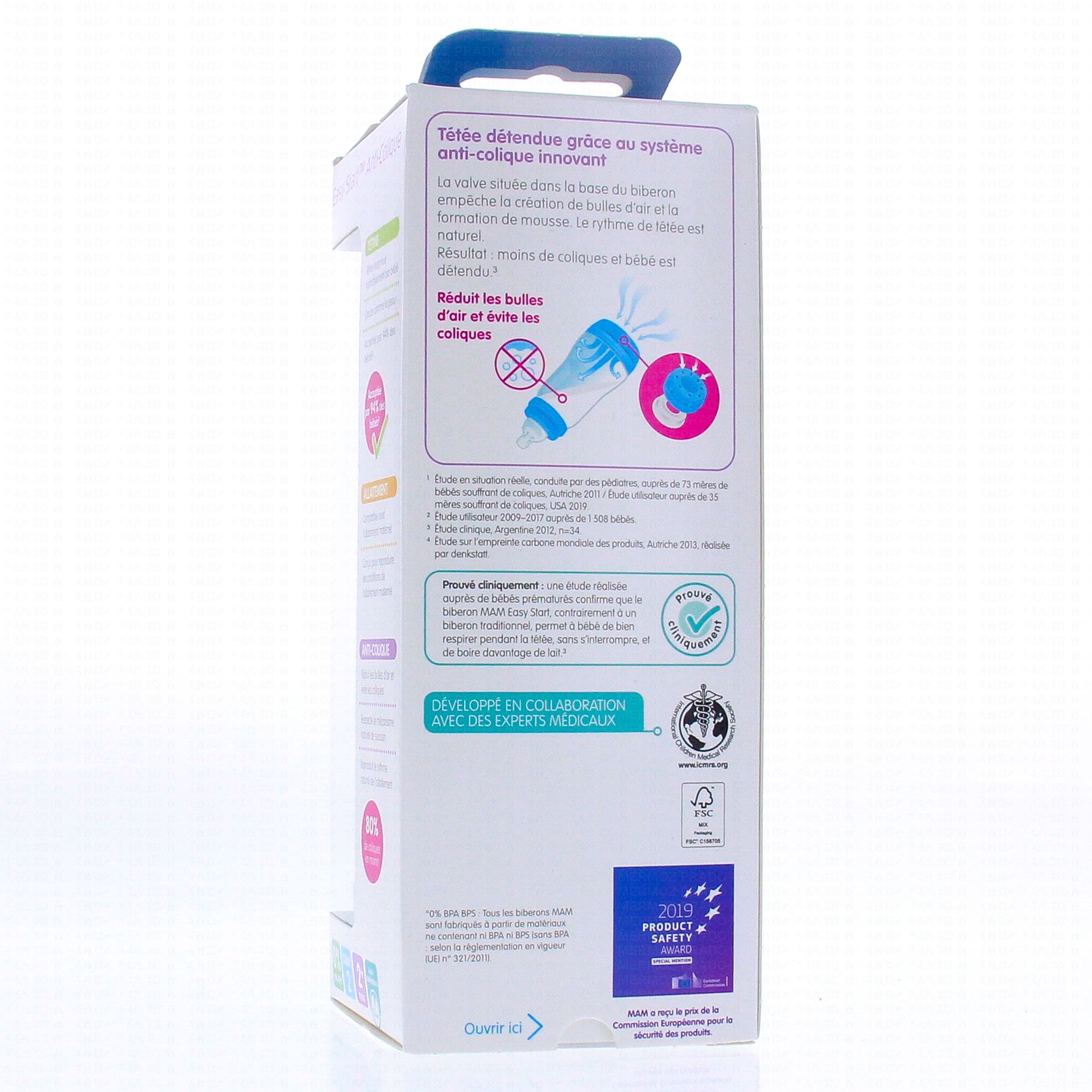 MAM Easy Start Anti-Colique biberon débit 2 260ml bleu couleur de la nature