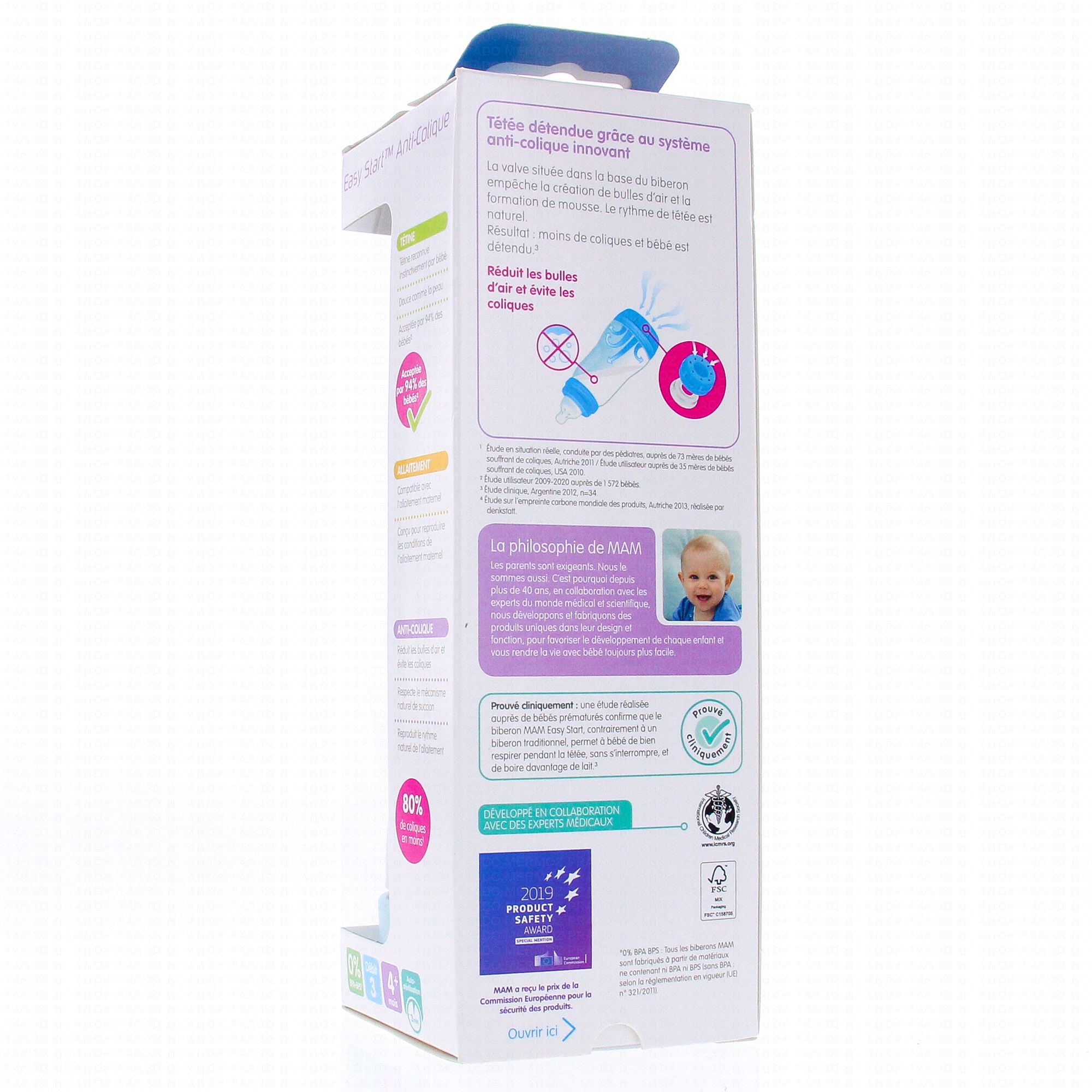 MAM Easy Start Anti-Colique biberon débit 3 320ml bleu couleur de la nature