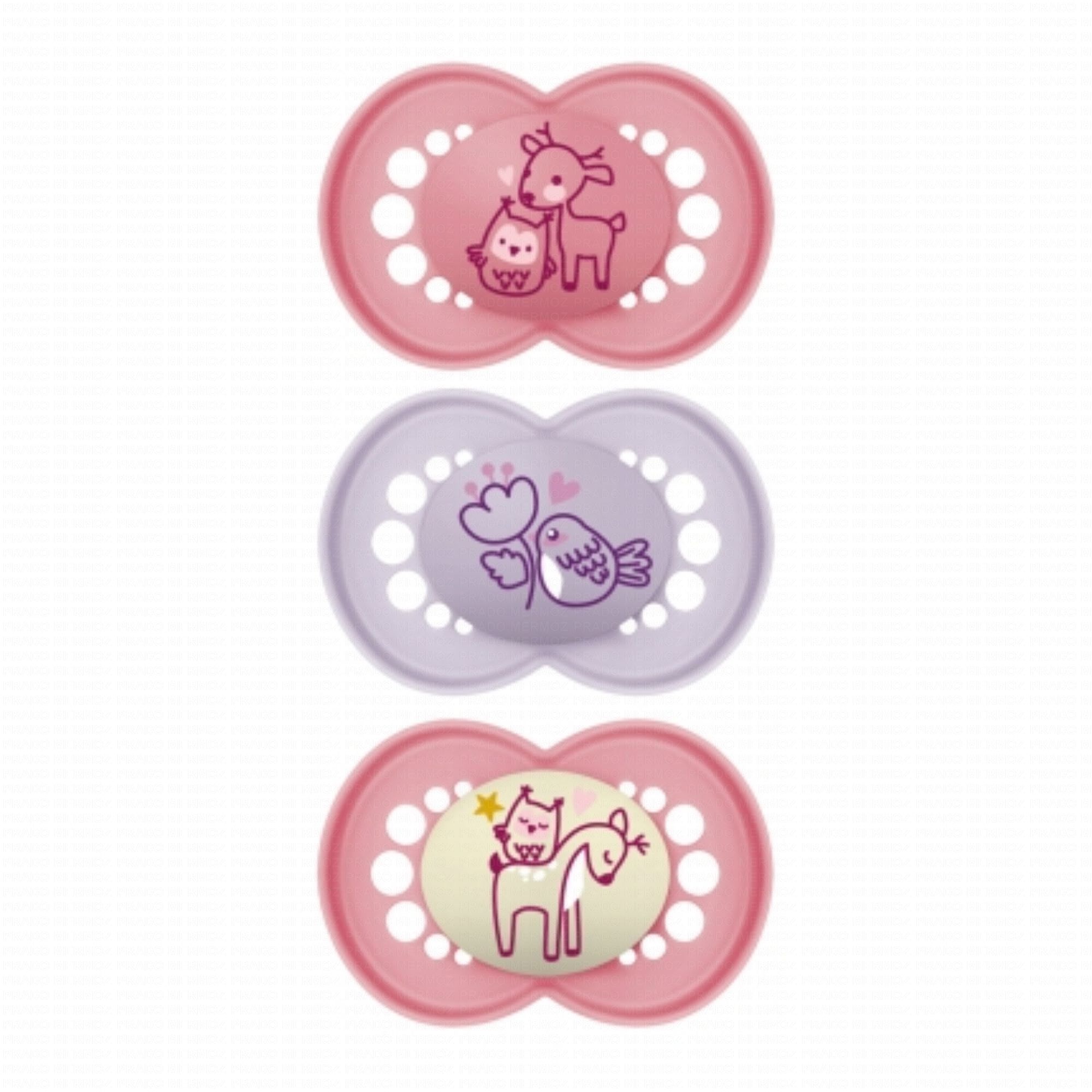 MAM Original Nature - 2 Sucettes jours + 1 Sucette Nuit +18 Mois rose / mauve