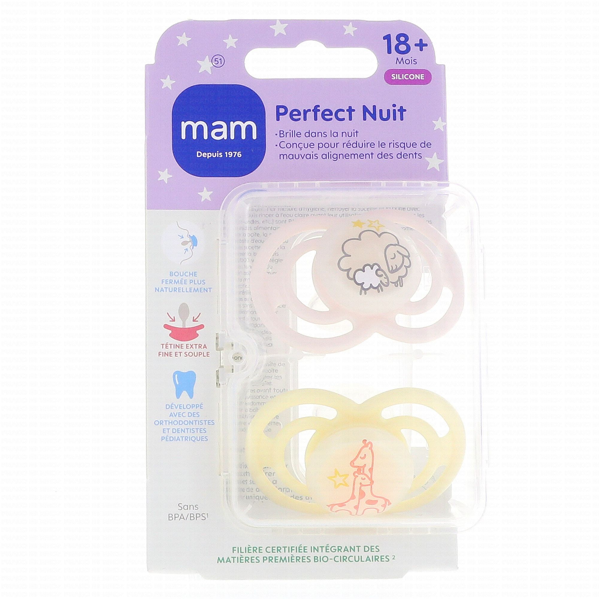 MAM Sucettes +18 mois perfect Nuit silicone animaux